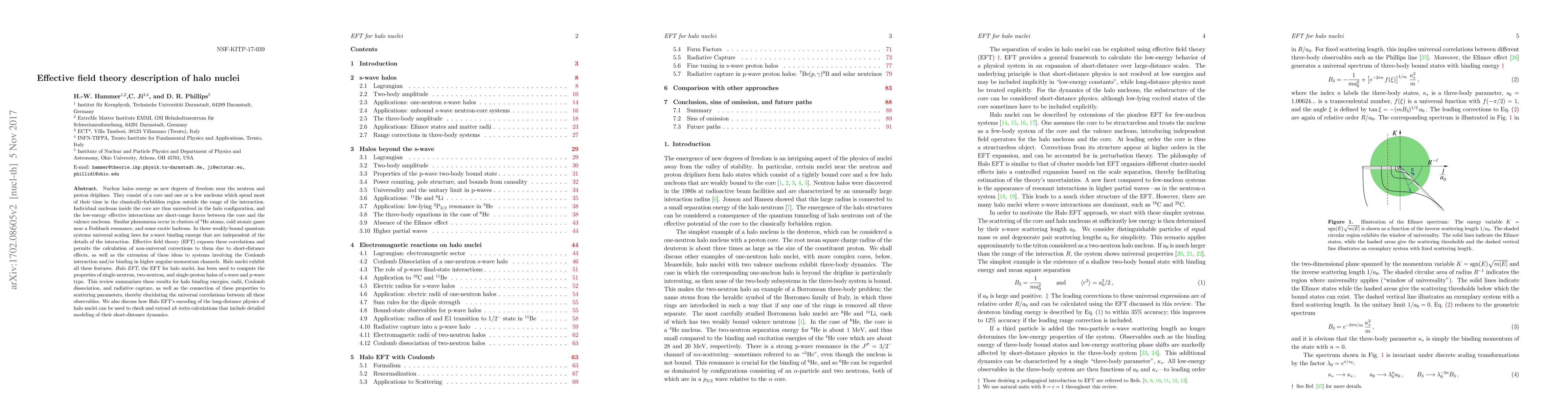 This paper reviews the application of Effective Field Theory (EFT) to describe halo nuclei, which are weakly-bound systems with a core and one or more nucleons in a classically-forbidden region. It summarizes the EFT's ability to calculate properties like binding energies and radii, and its role in understanding universal scaling laws and non-universal corrections due to short-distance effects.