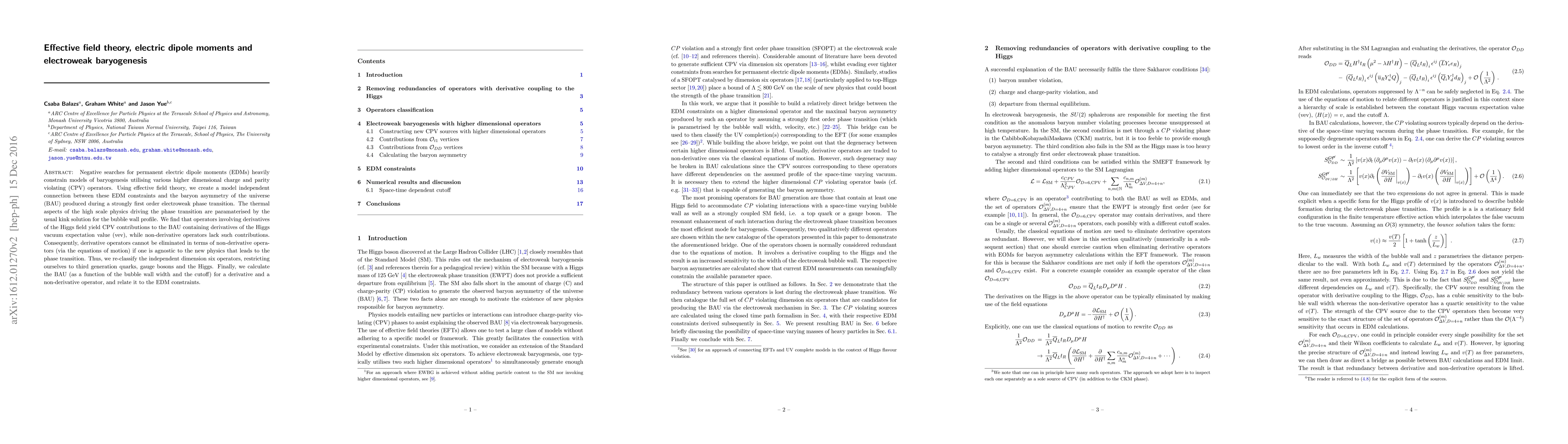 This paper uses effective field theory to link EDM constraints with the baryon asymmetry of the universe (BAU) generated during a strong electroweak phase transition. It finds that derivative operators cannot be eliminated via equations of motion, leading to a re-classification of independent dimension six operators, and calculates the BAU for both derivative and non-derivative operators in relation to EDM constraints.