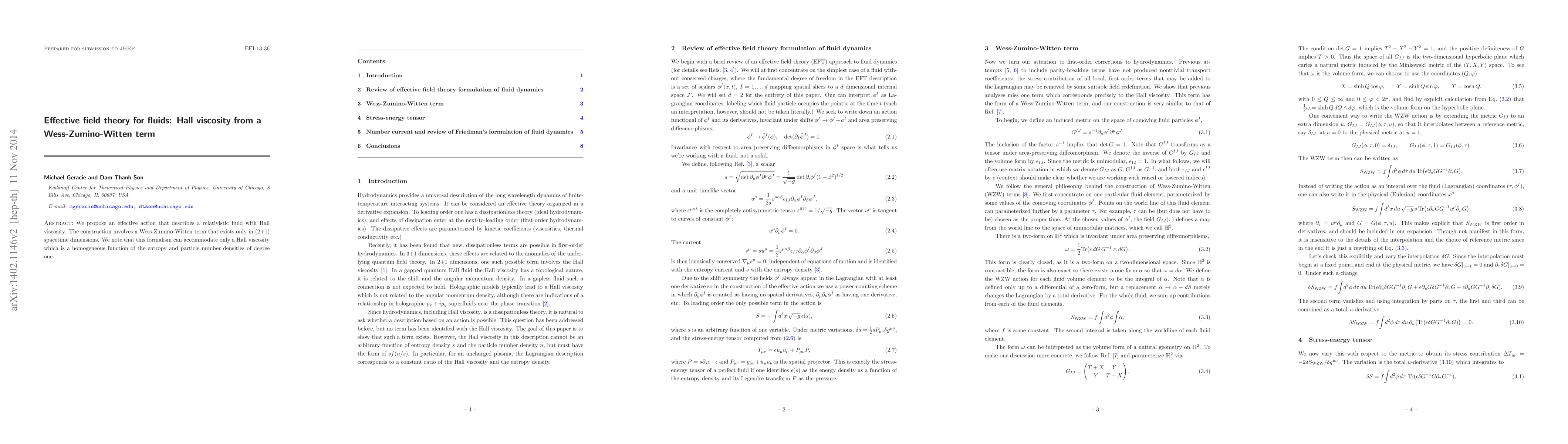 We propose an effective action that describe a relativistic fluid with Hall viscosity. The construction involves a Wess-Zumino-Witten term that exists only in (2+1) spacetime dimensions. We note that this formalism can accommodate only a Hall viscosity which is a homogeneous function of the entropy and particle number densities of degree one.