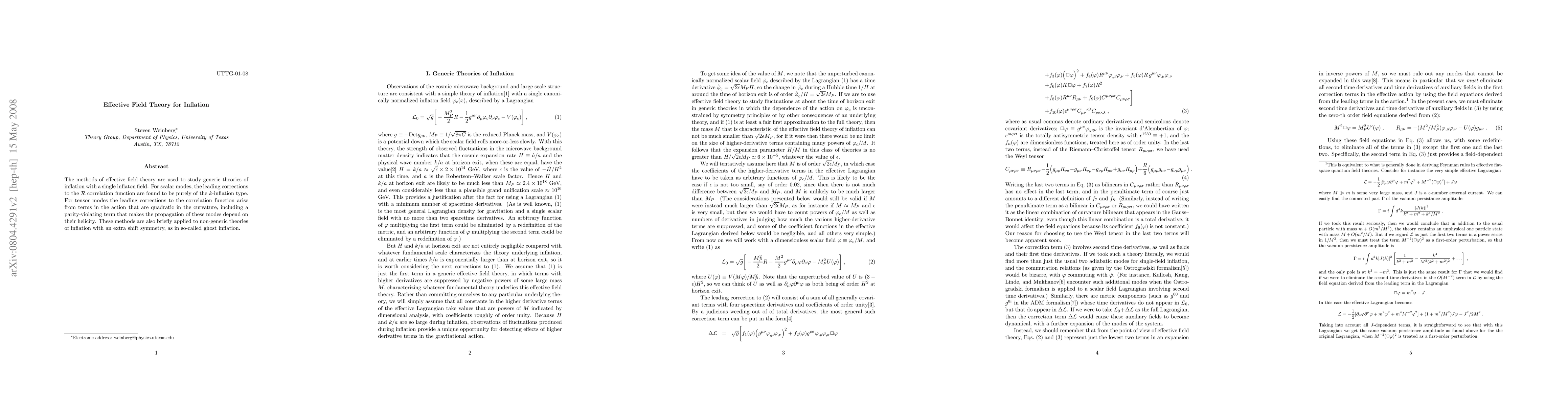 This paper employs effective field theory to analyze inflationary models with a single inflaton field, revealing leading corrections to the ${\cal R}$ correlation function for scalar modes and identifying quadratic curvature terms, including a parity-violating effect, for tensor modes. It also briefly examines non-generic inflation models with extra shift symmetry.