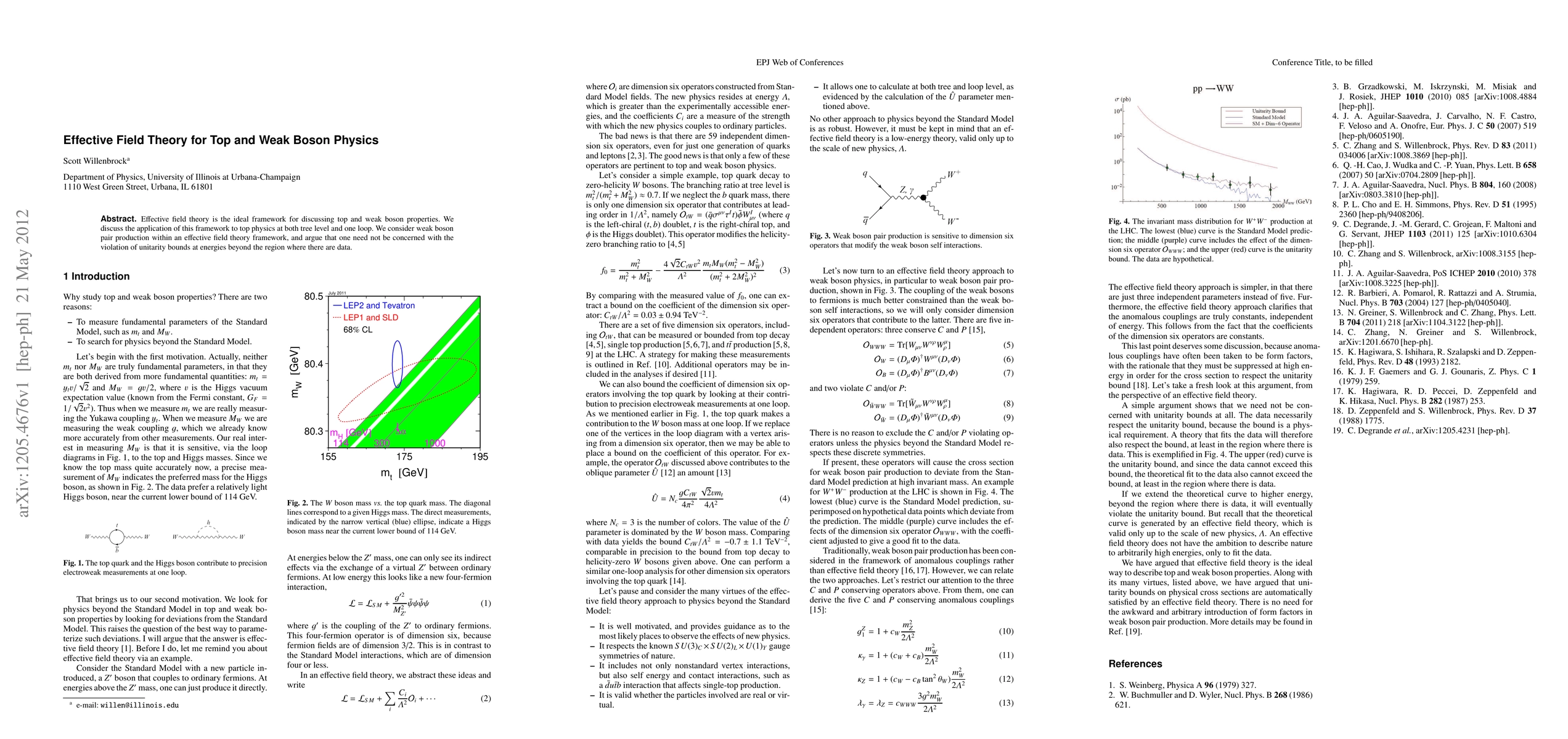 Effective field theory is the ideal framework for discussing top and weak boson properties. We discuss the application of this framework to top physics at both tree level and one loop. We consider weak boson pair production within an effective field theory framework, and argue that one need not be concerned with the violation of unitarity bounds at energies beyond the region where there are data.