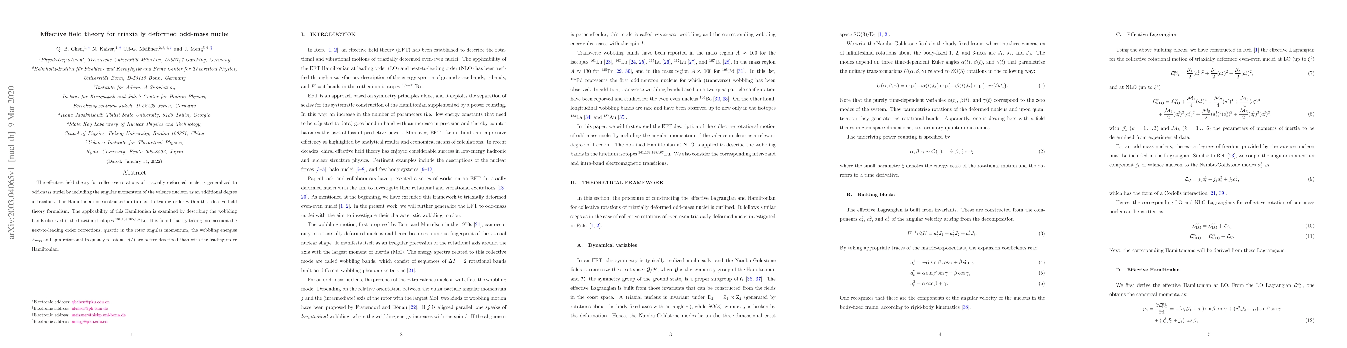 This paper generalizes the effective field theory for triaxially deformed nuclei to include odd-mass nuclei by incorporating the valence nucleon's angular momentum. The constructed Hamiltonian, up to next-to-leading order, better describes wobbling bands in lutetium isotopes compared to the leading order model.