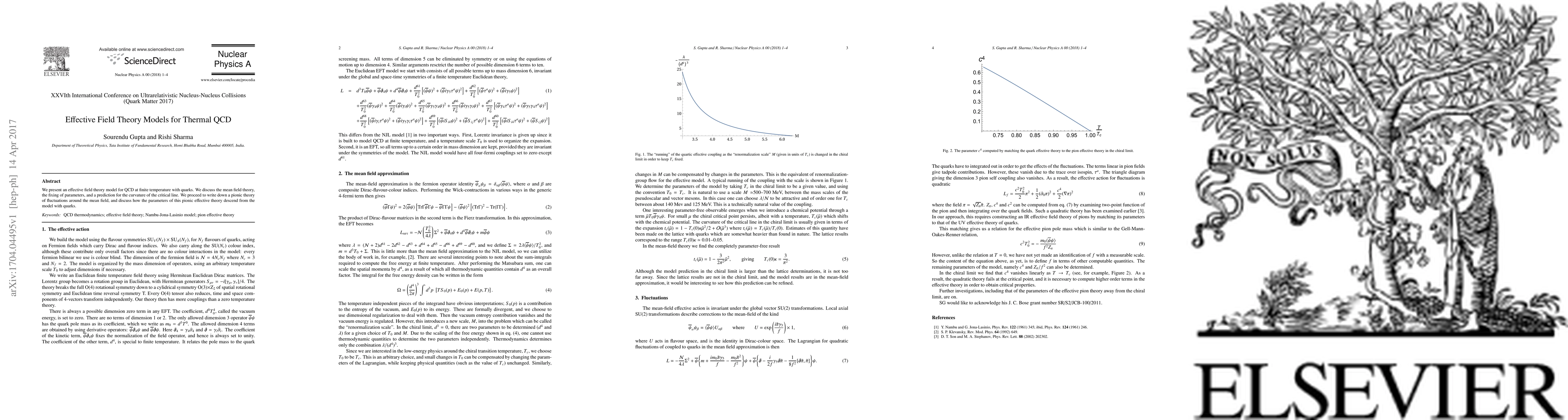 We present an effective field theory model for QCD at finite temperature with quarks. We discuss the mean field theory, the fixing of parameters, and a prediction for the curvature of the critical line. We proceed to write down a pionic theory of fluctuations around the mean field, and discuss how the parameters of this pionic effective theory descend from the model with quarks.
