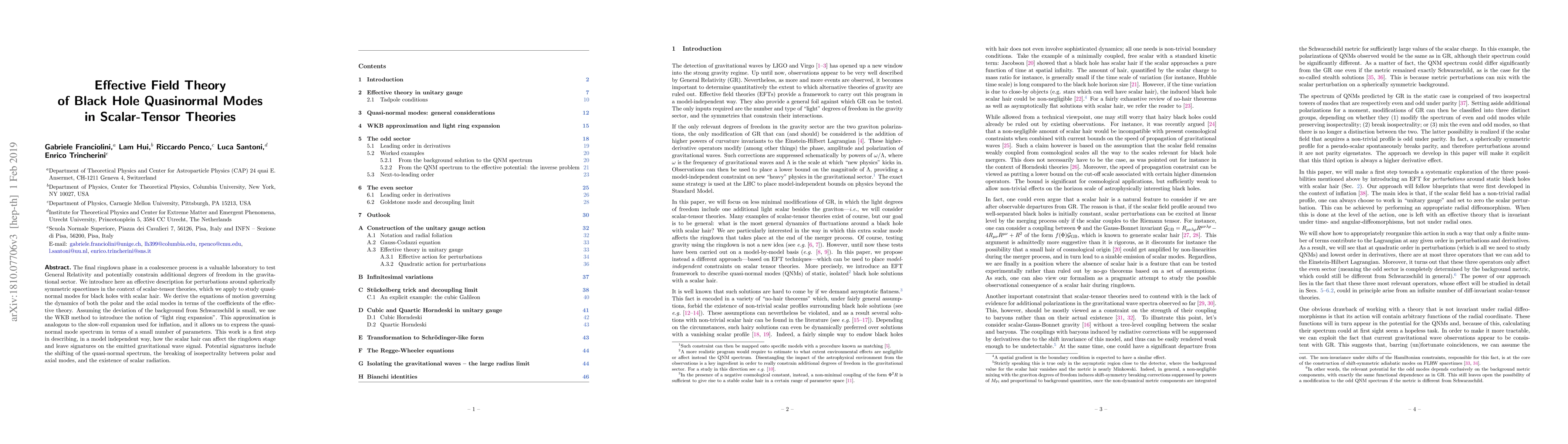 This paper introduces an effective theory for studying quasinormal modes in black holes with scalar hair, predicting potential signatures such as shifted spectra and broken isospectrality, which could be detected in gravitational wave signals.