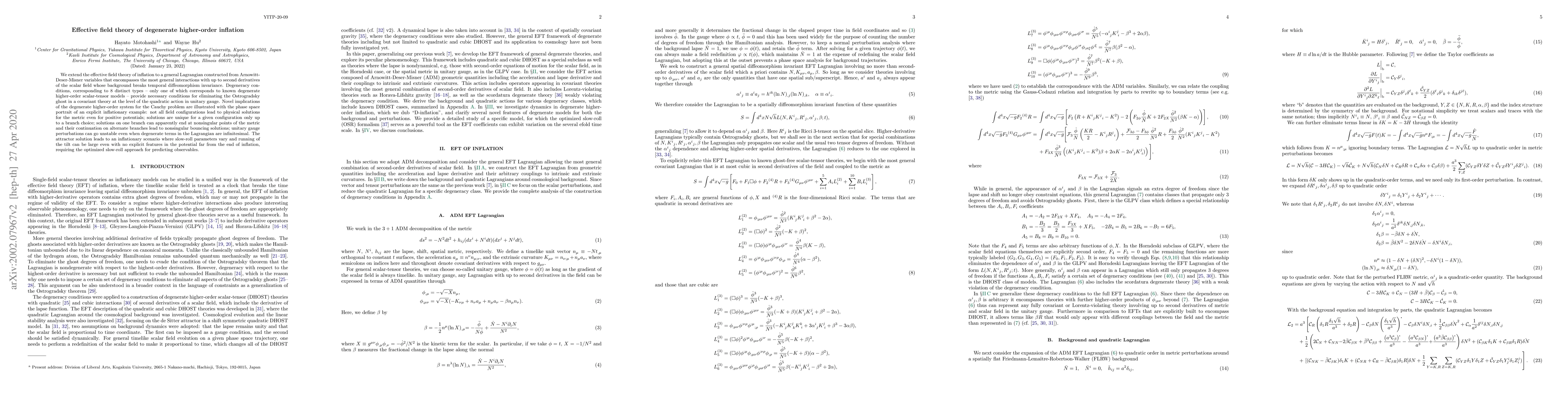 We extend the effective field theory of inflation to a general Lagrangian constructed from Arnowitt-Deser-Misner variables that encompasses the most general interactions with up to second derivatives of the scalar field whose background breaks temporal diffeomorphism invariance. Degeneracy conditions, corresponding to 8 distinct types -- only one of which corresponds to known degenerate higher-order scalar-tensor models -- provide necessary conditions for eliminating the Ostrogradsky ghost in a covariant theory at the level of the quadratic action in unitary gauge. Novel implications of the degenerate higher-order system for the Cauchy problem are illustrated with the phase space portrait of an explicit inflationary example: not all field configurations lead to physical solutions for the metric even for positive potentials; solutions are unique for a given configuration only up to a branch choice; solutions on one branch can apparently end at nonsingular points of the metric and their continuation on alternate branches lead to nonsingular bouncing solutions; unitary gauge perturbations can go unstable even when degenerate terms in the Lagrangian are infinitesimal. The attractor solution leads to an inflationary scenario where slow-roll parameters vary and running of the tilt can be large even with no explicit features in the potential far from the end of inflation, requiring the optimized slow-roll approach for predicting observables.