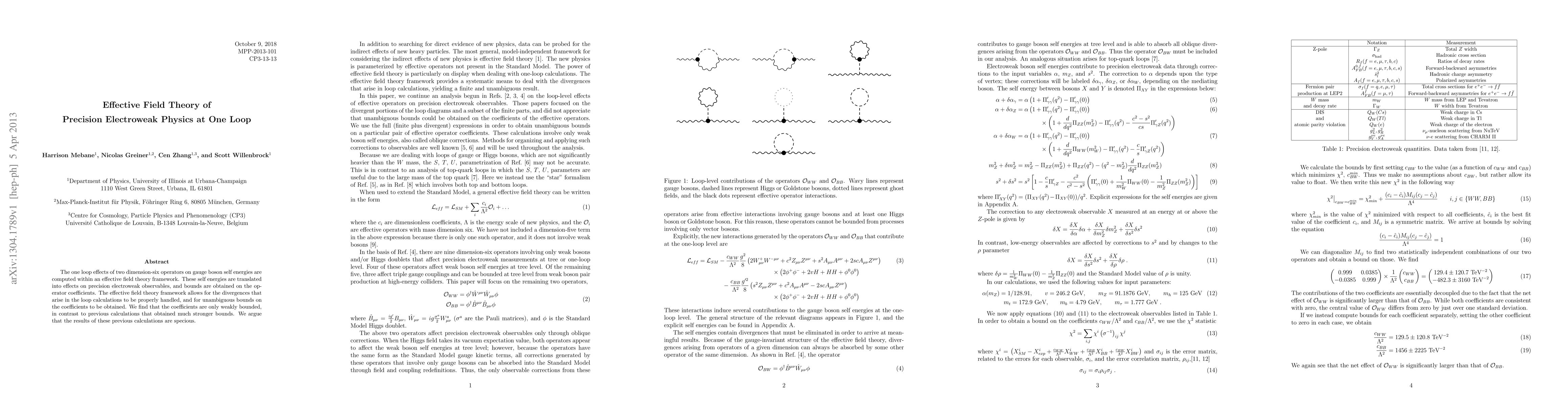 This paper computes one-loop effects of dimension-six operators on gauge boson self-energies within an effective field theory framework, translating these into precision electroweak observables and obtaining bounds on operator coefficients. Contrary to previous calculations, it finds only weak bounds on the coefficients due to improved handling of divergences.
