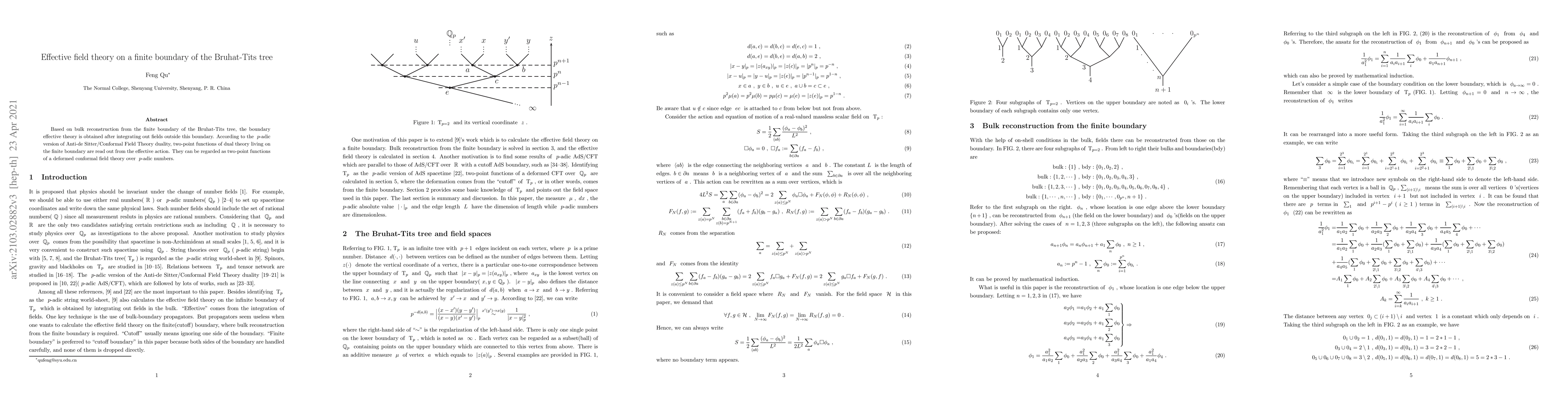 This paper develops an effective field theory on the finite boundary of the Bruhat-Tits tree by reconstructing the bulk from the boundary and integrating out external fields. It utilizes the $p$-adic AdS/CFT duality to derive two-point functions of a deformed conformal field theory over $p$-adic numbers from the effective action.