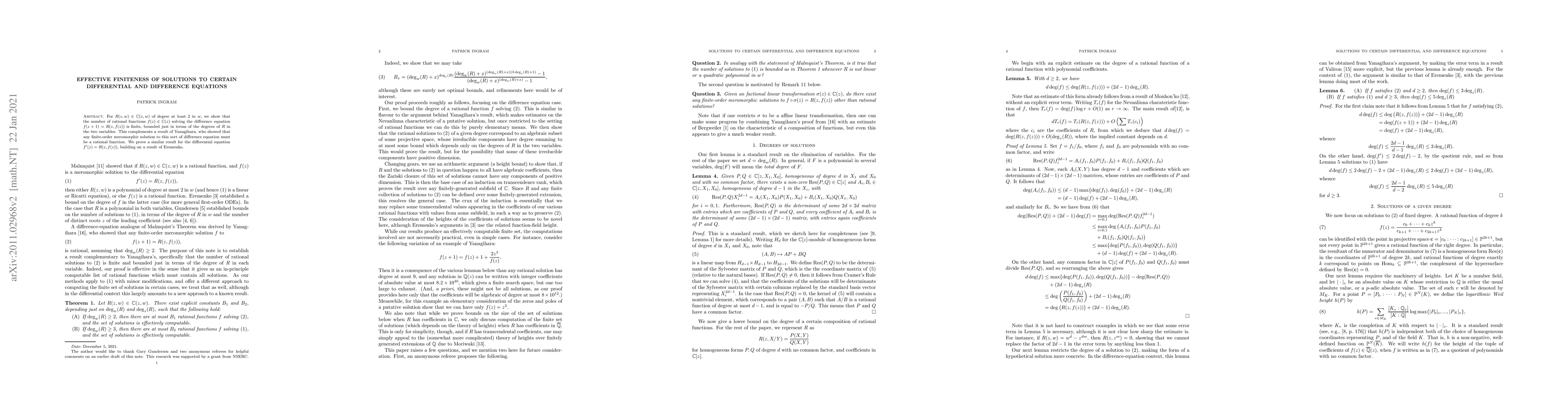 For R(z, w) rational with complex coefficients, of degree at least 2 in w, we show that the number of rational functions f(z) solving the difference equation f(z+1)=R(z, f(z)) is finite and bounded just in terms of the degrees of R in the two variables. This complements a result of Yanagihara, who showed that any finite-order meromorphic solution to this sort of difference equation must be a rational function. We prove a similar result for the differential equation f'(z)=R(z, f(z)), building on a result of Eremenko.