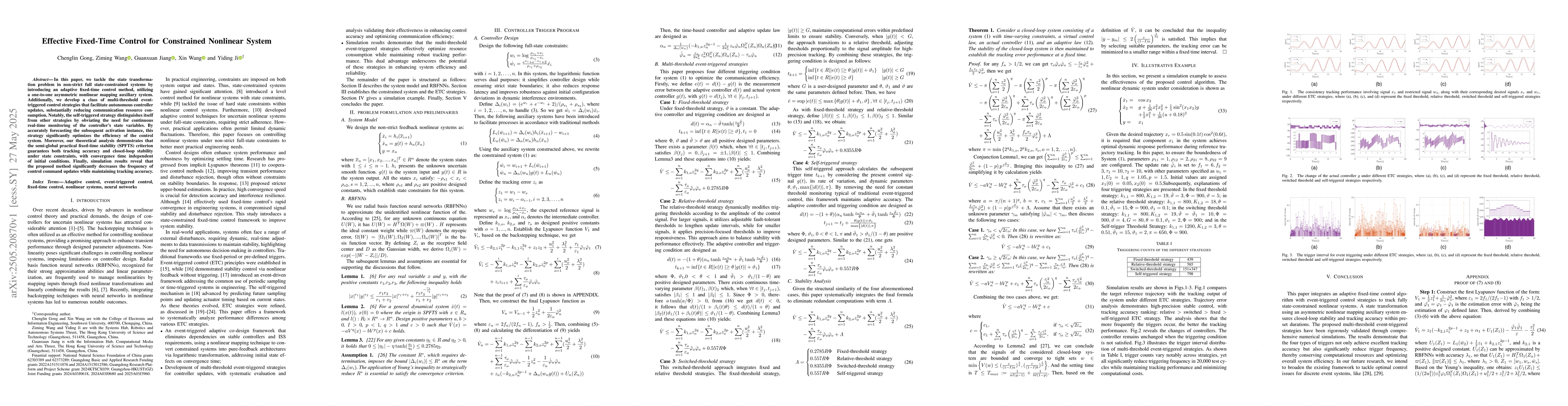 The paper introduces an adaptive fixed-time control method using a one-to-one asymmetric nonlinear mapping auxiliary system for state transformation in non-strict full state-constrained systems, alongside multi-threshold event-triggered control strategies.