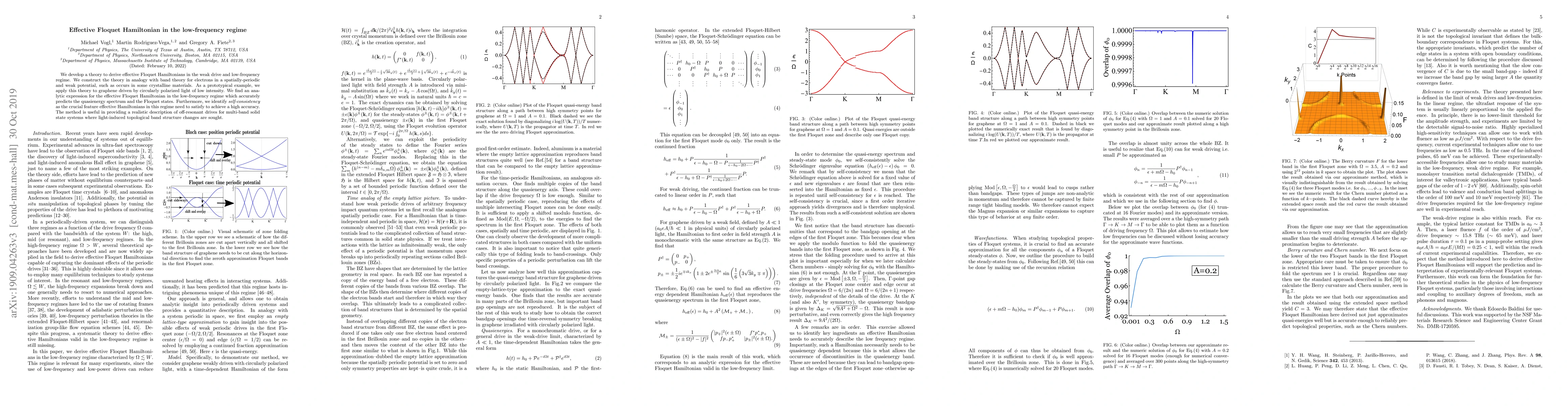 We develop a theory to derive effective Floquet Hamiltonians in the weak drive and low-frequency regime. We construct the theory in analogy with band theory for electrons in a spatially-periodic and weak potential, such as occurs in some crystalline materials. As a prototypical example, we apply this theory to graphene driven by circularly polarized light of low intensity. We find an analytic expression for the effective Floquet Hamiltonian in the low-frequency regime which accurately predicts the quasienergy spectrum and the Floquet states. Furthermore, we identify self-consistency as the crucial feature effective Hamiltonians in this regime need to satisfy to achieve a high accuracy. The method is useful in providing a realistic description of off-resonant drives for multi-band solid state systems where light-induced topological band structure changes are sought.