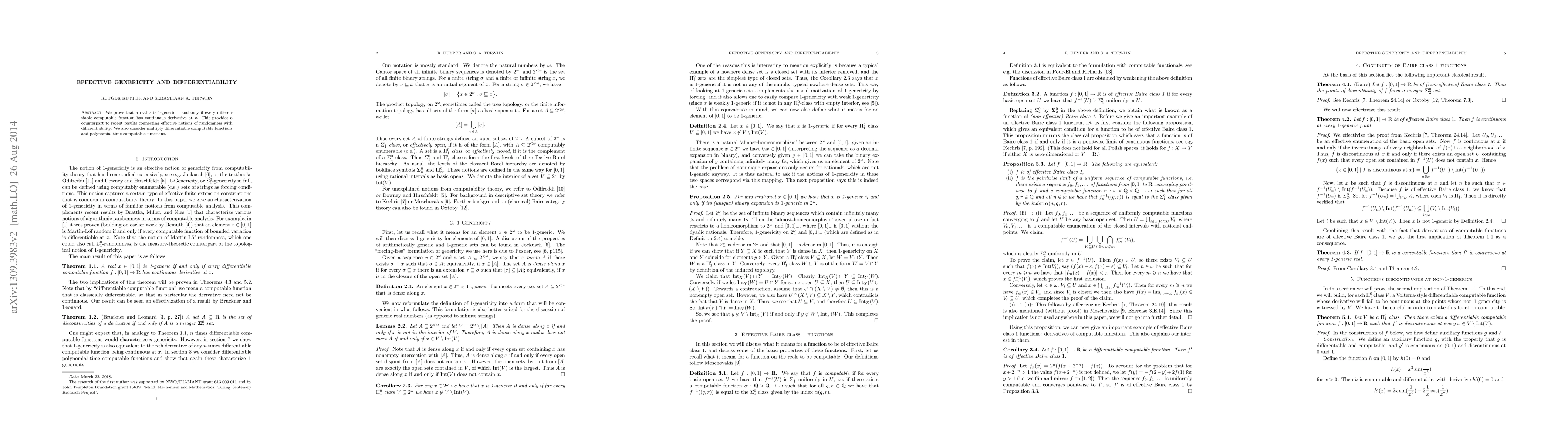 We prove that a real x is 1-generic if and only if every differentiable computable function has continuous derivative at x. This provides a counterpart to recent results connecting effective notions of randomness with differentiability. We also consider multiply differentiable computable functions and polynomial time computable functions.