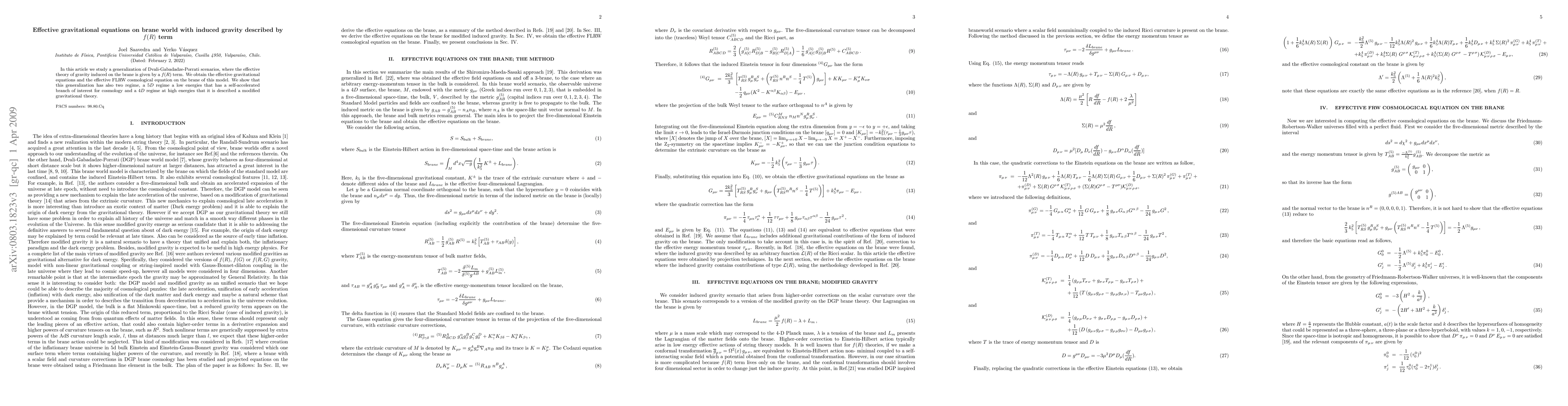 This paper generalizes DGP scenarios with induced gravity described by an $f(R)$ term, deriving effective gravitational equations and cosmological equations on the brane. It identifies two regimes: a 5D self-accelerated branch at low energies relevant for cosmology and a 4D modified gravitational theory at high energies.