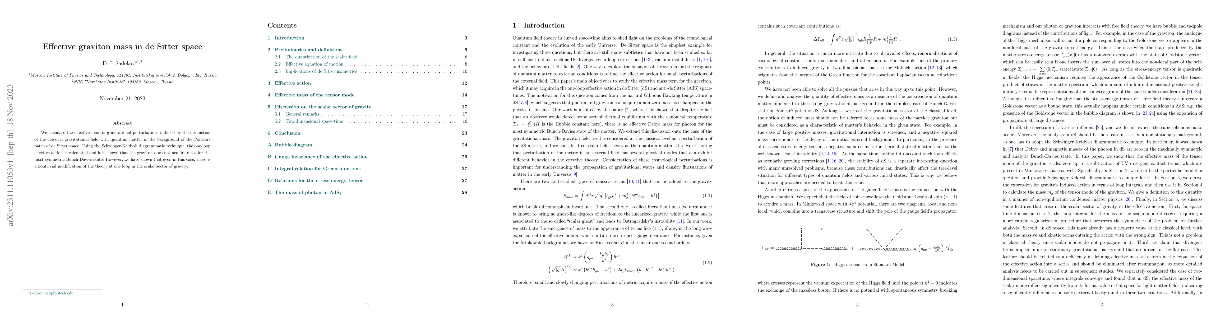 This paper calculates the effective mass of gravitons in de Sitter space using the Schwinger-Keldysh technique, finding that the graviton remains massless for the Bunch-Davies state, but reveals a nontrivial modification in the scalar sector of gravity at one loop.
