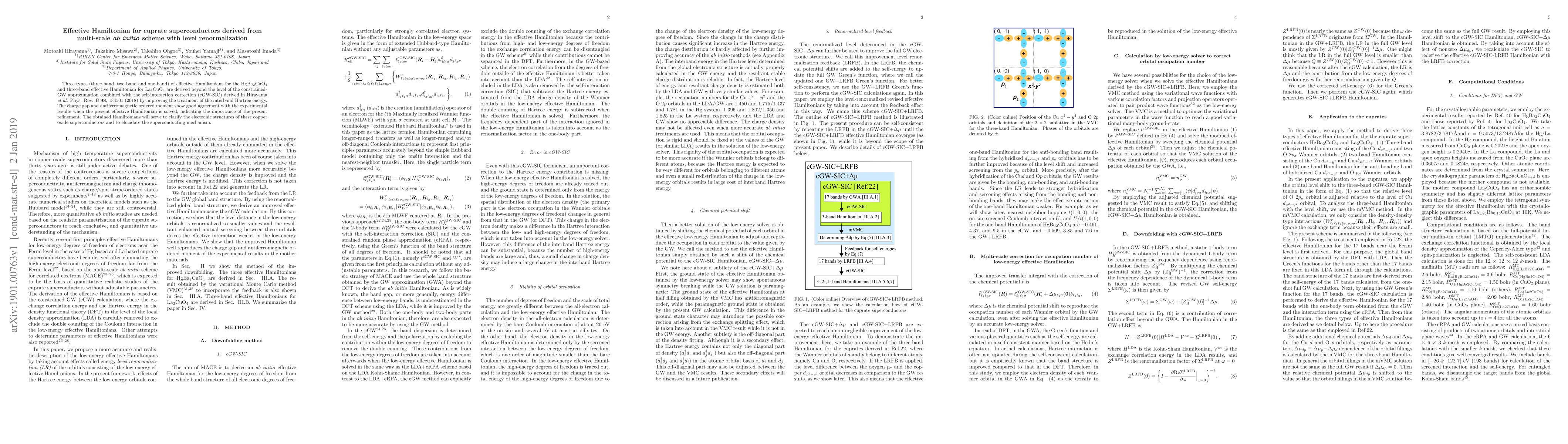 This paper derives three types of effective Hamiltonians for cuprate superconductors using an advanced multi-scale ab initio scheme, showing good agreement with experimental charge gap and antiferromagnetic properties. The refined treatment aims to clarify electronic structures and elucidate the superconducting mechanism.