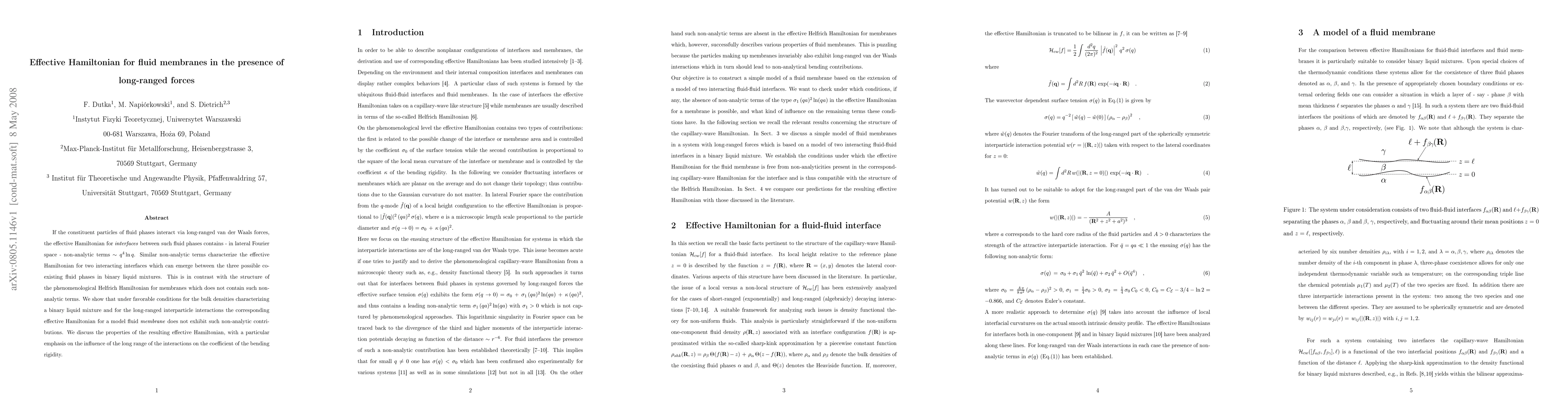 This paper explores the effective Hamiltonian for fluid membranes influenced by long-ranged van der Waals forces, revealing non-analytic terms in lateral Fourier space. It demonstrates that under specific conditions, these non-analytic terms do not appear in the effective Hamiltonian, focusing on the impact of long-range interactions on bending rigidity.