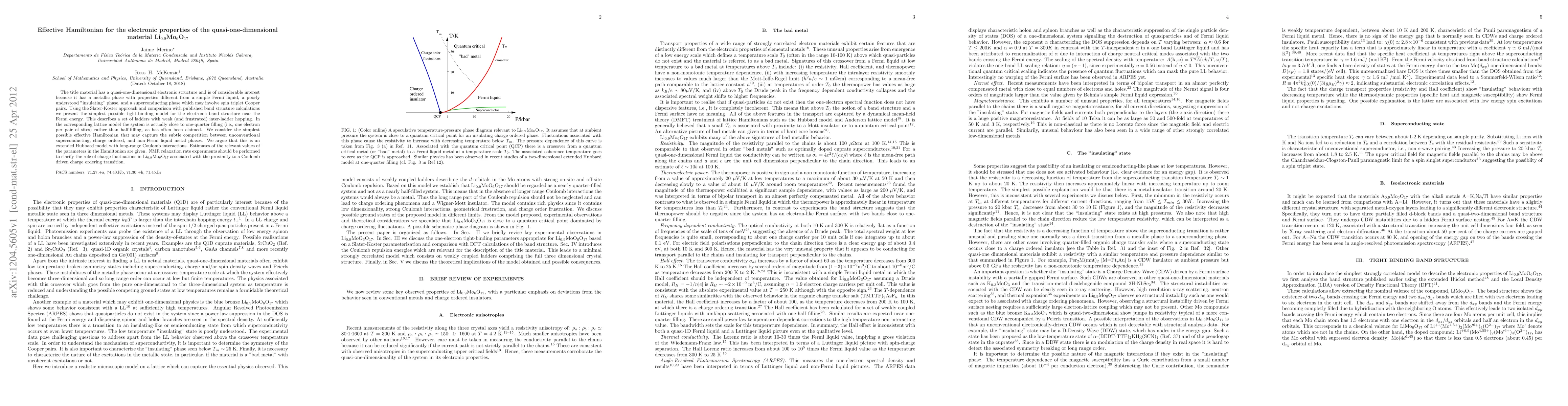 Researchers developed a simple tight-binding model for Li0.9Mo6O17, finding it to be close to one-quarter filling instead of half-filling, and proposing an extended Hubbard model with long-range Coulomb interactions as a possible effective Hamiltonian to capture its complex electronic properties.