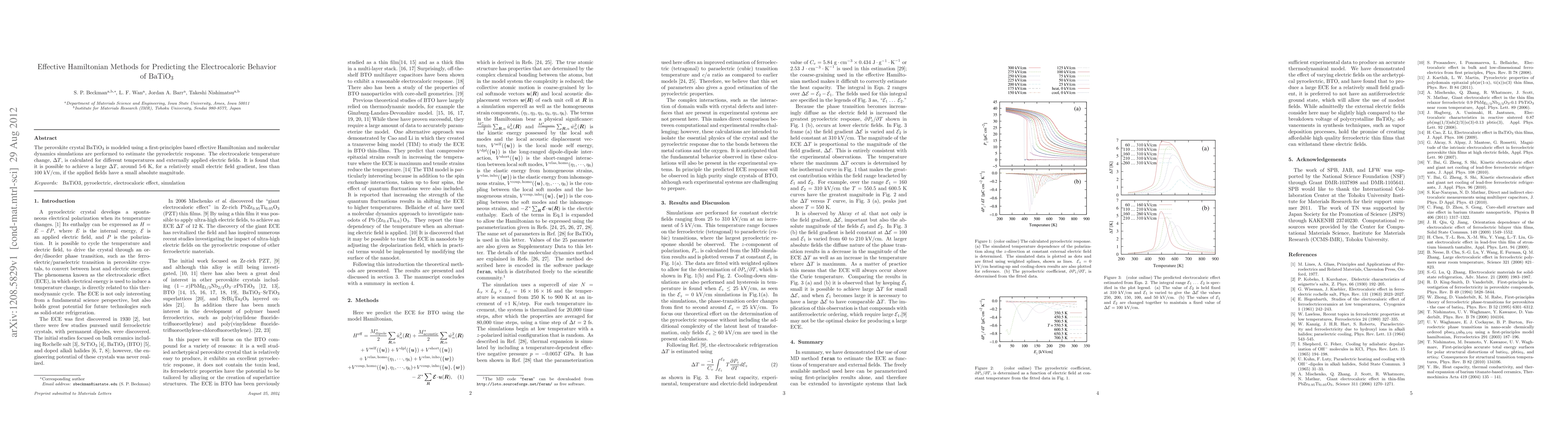 The study employs an effective Hamiltonian method to model BaTiO3, revealing significant electrocaloric temperature changes (\DeltaT) of up to 5-6 K under small electric fields (<100 kV/cm) and low field magnitudes. This suggests a promising approach for predicting the material's pyroelectric response.