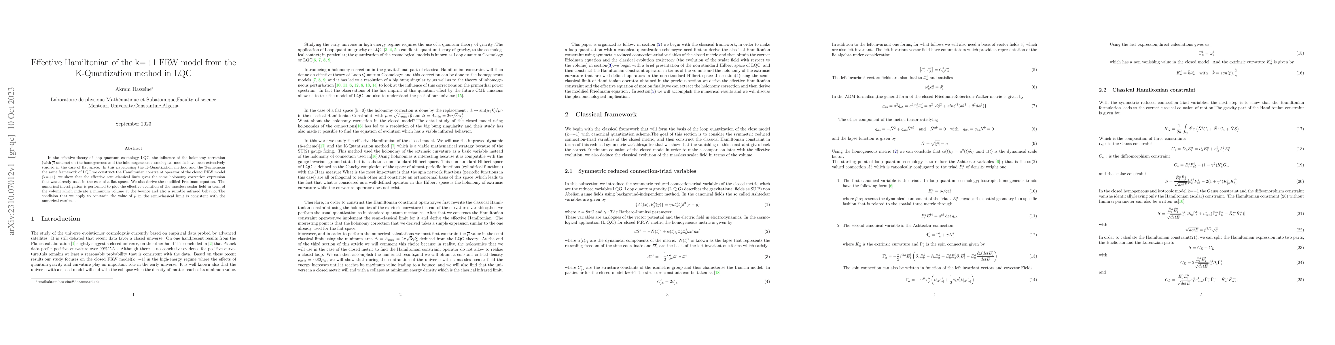 In the effective theory of loop quantum cosmology LQC, the influence of the holonomy correction (with $\overline{\mu}$-scheme) on the homogeneous and the inhomogeneous cosmological models have been extensively studied in the case of flat space. In this paper,using the K-Quantization method and the $\overline{\mu}$-scheme,in the same framework of LQC,we construct the Hamiltonian constraint operator of the closed FRW model (k=+1), we show that the effective semi-classical limit gives the same holonomy correction expression that was already used in the case of a flat space. We also derive the modified Friedman equation. The numerical investigation is performed to plot the effective evolution of the massless scalar field in term of the volume,which indicate a minimum volume at the bounce and also a suitable infrared behavior.The condition that we apply to constrain the value of $\overline{\mu}$ in the semi-classical limit is consistent with the numerical results.