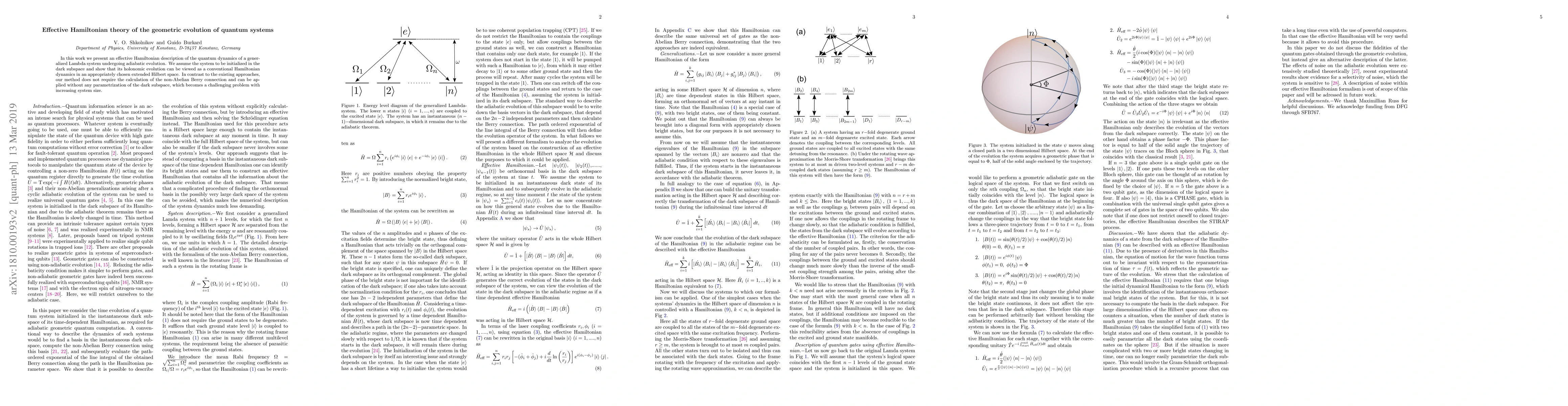 This research introduces an effective Hamiltonian approach to describe the quantum dynamics of a generalized Lambda system undergoing adiabatic evolution. The method simplifies the process by avoiding computation of the non-Abelian Berry connection and parametrization of the dark subspace, making it scalable for larger systems.