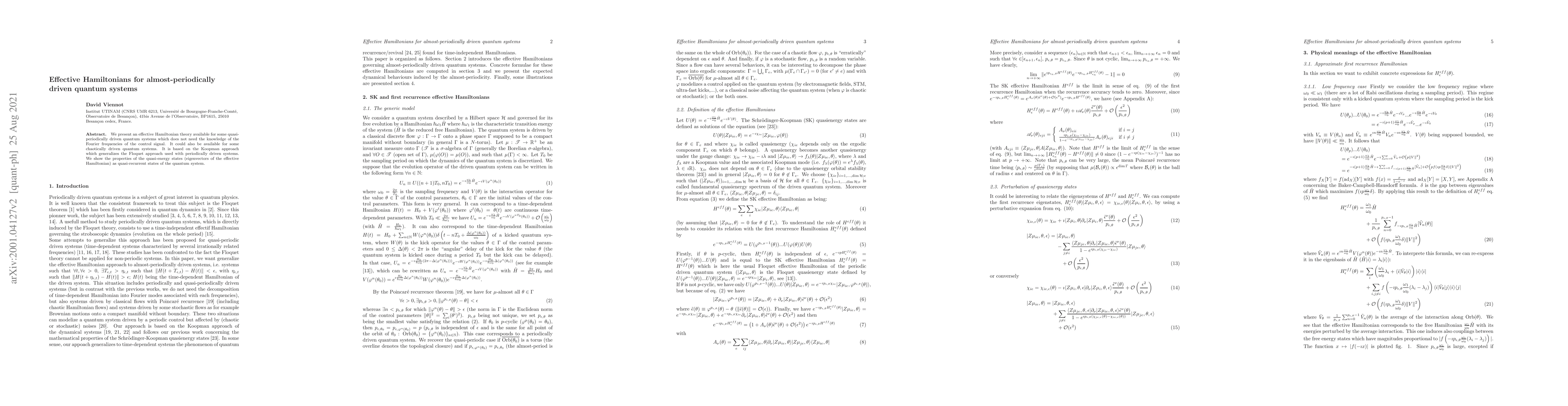 A new method for calculating the effective Hamiltonian of a quantum system driven by an almost-periodic potential is presented.