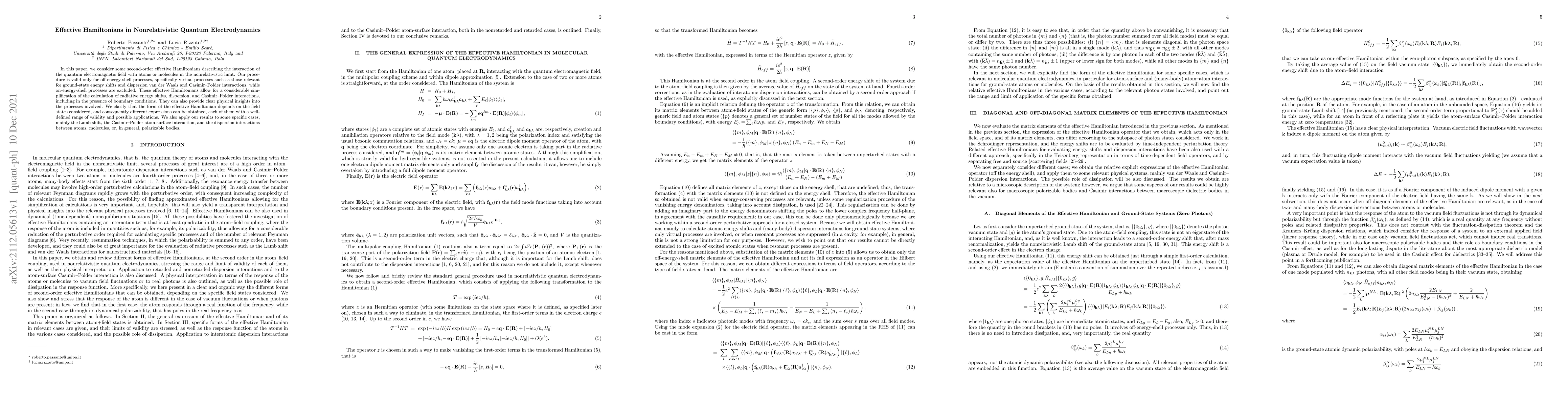 Researchers developed effective Hamiltonians to simplify calculations of quantum electromagnetic interactions in nonrelativistic systems, enabling clear insights into energy shifts, dispersion, and boundary effects.