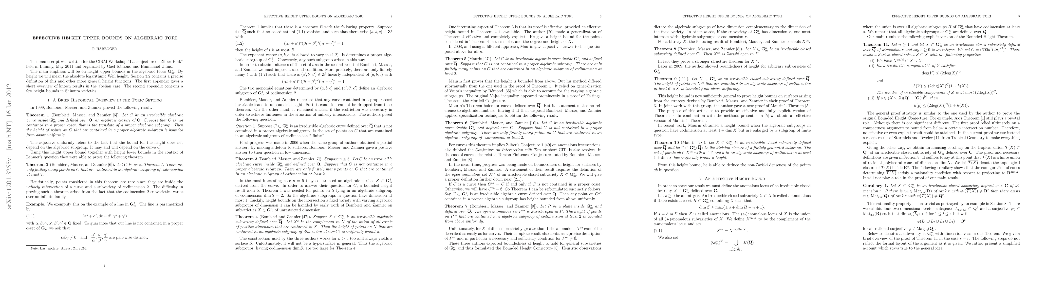 The main emphasis will be on height upper bounds in the algebraic torus G^{n}_{m}. By height we will mean the absolute logarithmic Weil height. Section 3.2 contains a precise definition of this and other more general height functions. The first appendix gives a short overview of known results in the abelian case. The second appendix contains a few height bounds in Shimura varieties.