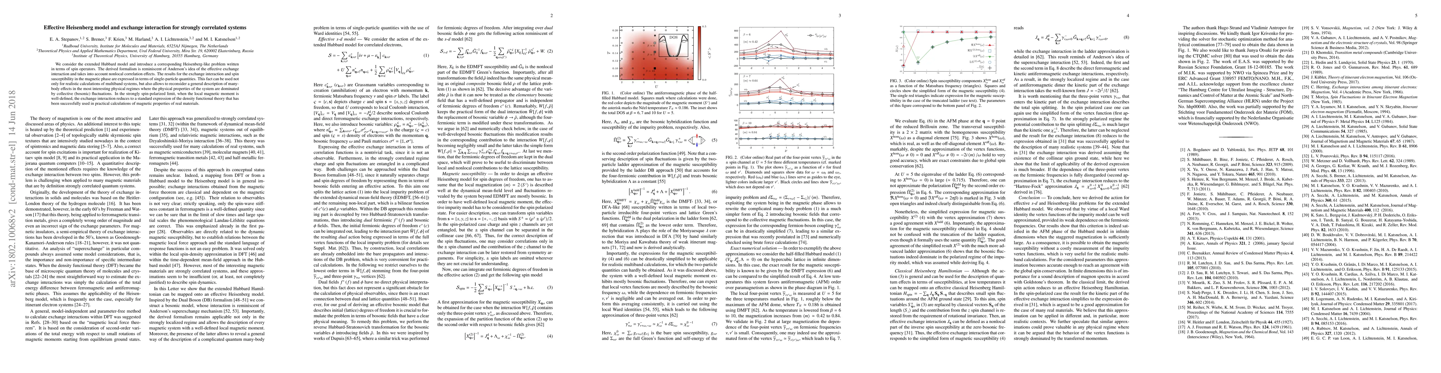 This paper develops an effective Heisenberg model for the extended Hubbard model, capturing nonlocal correlation effects and deriving expressions for exchange interaction and magnetic susceptibility in terms of single-particle quantities. In the strongly spin-polarized limit, the model aligns with standard density functional theory expressions used for practical magnetic property calculations.