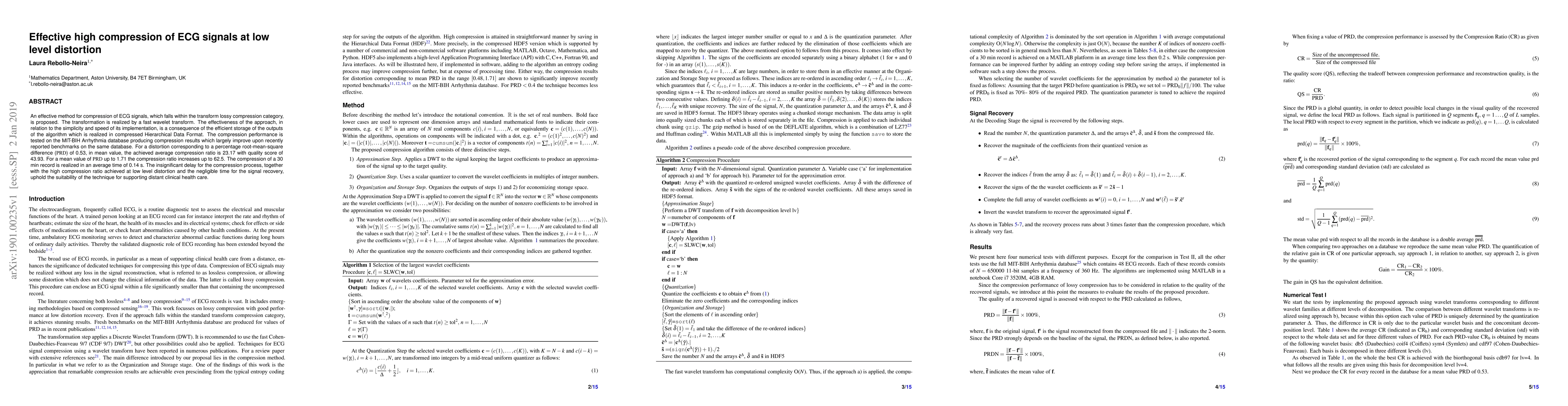 This paper proposes a fast wavelet transform for compressing ECG signals with minimal distortion, achieving high compression ratios of up to 62.5 at low level distortion.