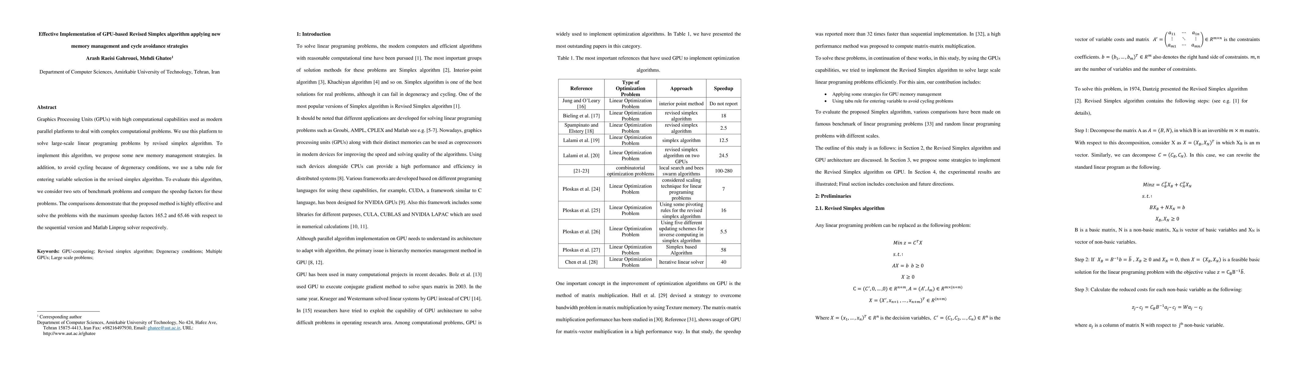 Graphics Processing Units (GPUs) with high computational capabilities used as modern parallel platforms to deal with complex computational problems. We use this platform to solve large-scale linear programing problems by revised simplex algorithm. To implement this algorithm, we propose some new memory management strategies. In addition, to avoid cycling because of degeneracy conditions, we use a tabu rule for entering variable selection in the revised simplex algorithm. To evaluate this algorithm, we consider two sets of benchmark problems and compare the speedup factors for these problems. The comparisons demonstrate that the proposed method is highly effective and solve the problems with the maximum speedup factors 165.2 and 65.46 with respect to the sequential version and Matlab Linprog solver respectively.