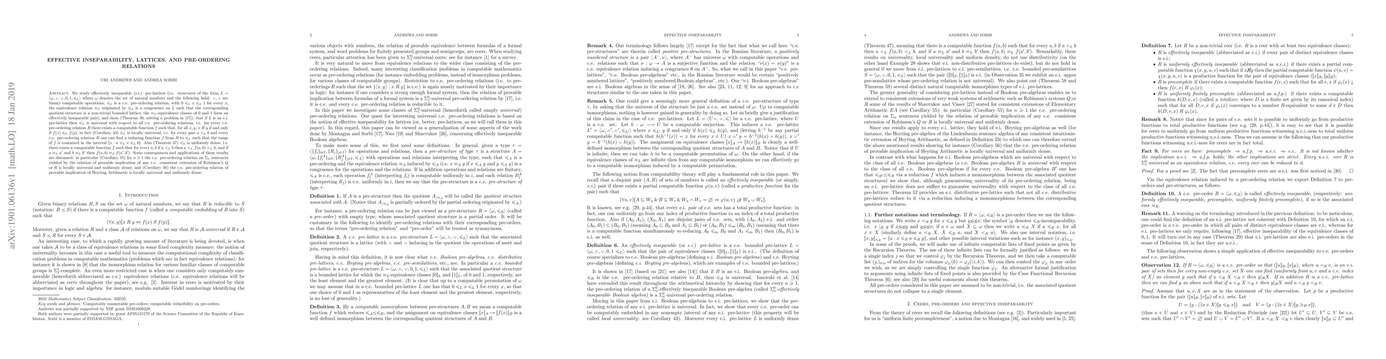 We study effectively inseparable (e.i.) pre-lattices (i.e. structures of the form $L=\langle \omega, \wedge, \lor, 0, 1, \leq_L\rangle$ where $\omega$ denotes the set of natural numbers and the following hold: $\wedge, \lor$ are binary computable operations; $\leq_L$ is a c.e. pre-ordering relation, with $0 \leq_{L} x \leq_{L} 1$ for every $x$; the equivalence relation $\equiv_L$ originated by $\leq_L$ is a congruence on $L$ such that the corresponding quotient structure is a non-trivial bounded lattice; the $\equiv_L$-equivalence classes of $0$ and $1$ form an effectively inseparable pair), and show that if $L$ is an e.i. pre-lattice then $\le_{L}$ is universal with respect to all c.e. pre-ordering relations, i.e. for every c.e. pre-ordering relation $R$ there exists a computable function $f$ such that, for all $x,y$, $x \mathrel{R} y$ if and only if $f(x) \le_{L} f(y)$; in fact $\leq_L$ is locally universal, i.e. for every pair $a<_{L} b$ and every c.e. pre ordering relation $R$ one can find a reducing function $f$ from $R$ to $\le_{L}$ such that the range of $f$ is contained in the interval $\{x: a \leq_{L} x \leq_{L} b\}$. Also $\leq_L$ is uniformly dense, i.e. there exists a computable function $f$ such that for every $a,b$ if $a<_{L} b$ then $a<_{L} f(a,b) <_{L} b$, and if $a\equiv_{L} a'$ and $b \equiv_{L} b'$ then $f(a,b)\equiv_{L} f(a',b')$. Some consequences and applications of these results are discussed: in particular for $n \ge 1$ the c.e. pre-ordering relation on $\Sigma_{n}$ sentences yielded by the relation of provable implication of any c.e. consistent extension of Robinson's $Q$ or $R$ is locally universal and uniformly dense; and the c.e. pre-ordering relation of provable implication of Heyting Arithmetic is locally universal and uniformly dense.
