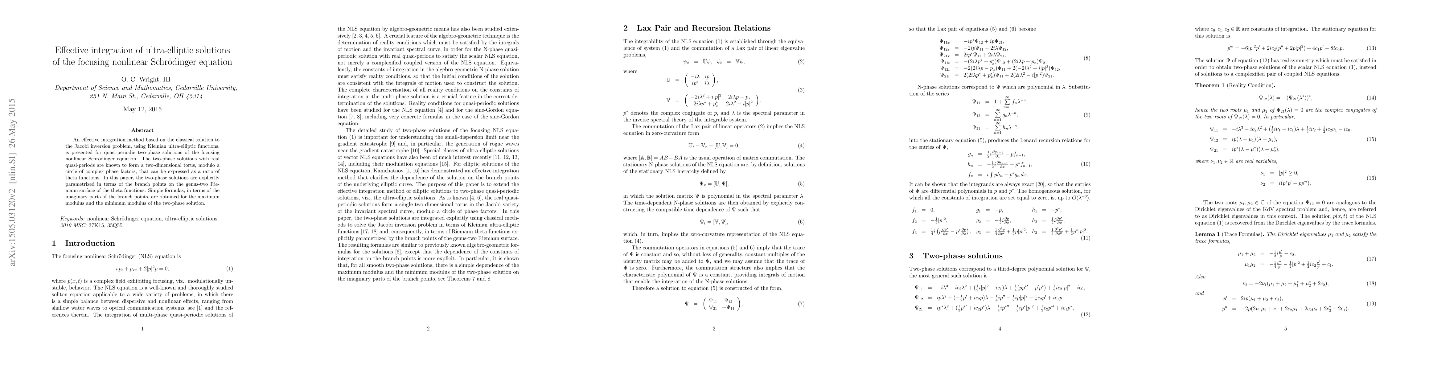 An effective integration method based on the classical solution to the Jacobi inversion problem, using Kleinian ultra-elliptic functions, is presented for quasi-periodic two-phase solutions of the focusing nonlinear Schr\"odinger equation. The two-phase solutions with real quasi-periods are known to form a two-dimensional torus, modulo a circle of complex phase factors, that can be expressed as a ratio of theta functions. In this paper, the two-phase solutions are explicitly parametrized in terms of the branch points on the genus-two Riemann surface of the theta functions. Simple formulas, in terms of the imaginary parts of the branch points, are obtained for the maximum modulus and the minimum modulus of the two-phase solution.