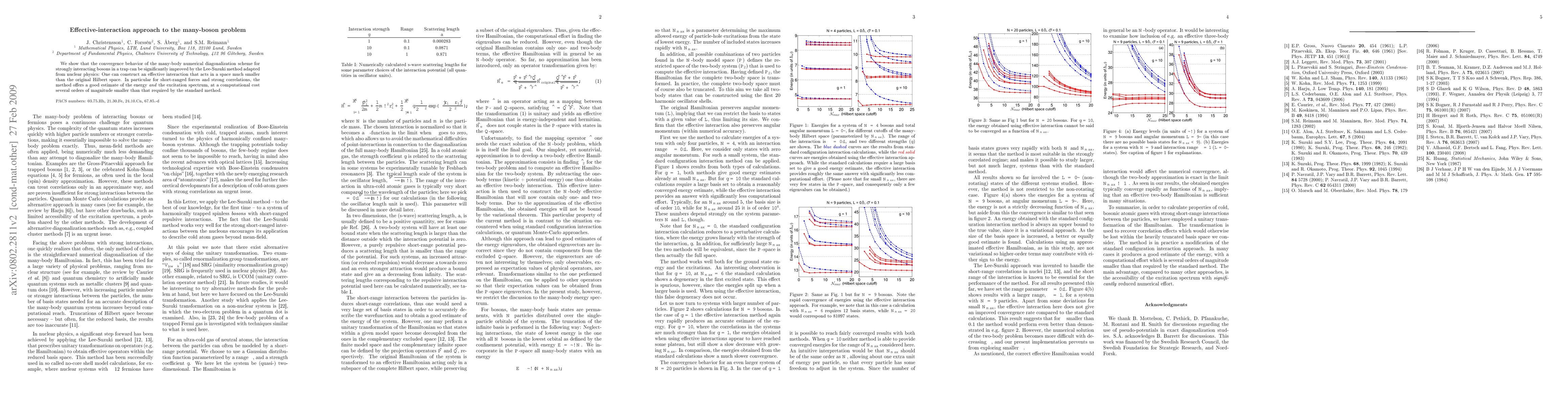 This research introduces an improved method for calculating the energy and excitation spectrum of strongly interacting bosons in a trap, utilizing the Lee-Suzuki technique from nuclear physics. The approach drastically reduces computational cost by constructing an effective interaction in a smaller Hilbert space, offering accurate results for short-ranged forces and strong correlations.
