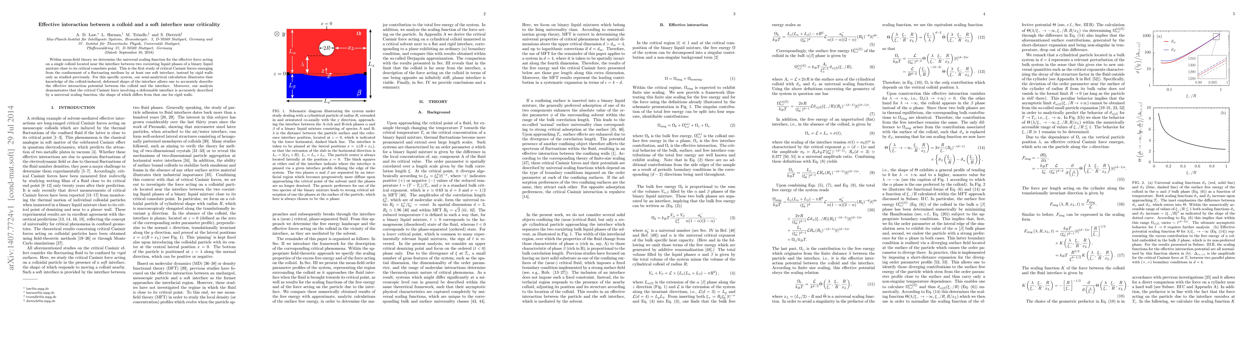 This study investigates the effective force on a colloid near a soft interface between two liquid phases at their critical consolute point, revealing a universal scaling function for critical Casimir forces. Unlike previous studies, this research focuses on deformable interfaces, showing that the shape deformation due to the colloid accurately describes the interaction potential, with a distinct scaling function compared to rigid walls.