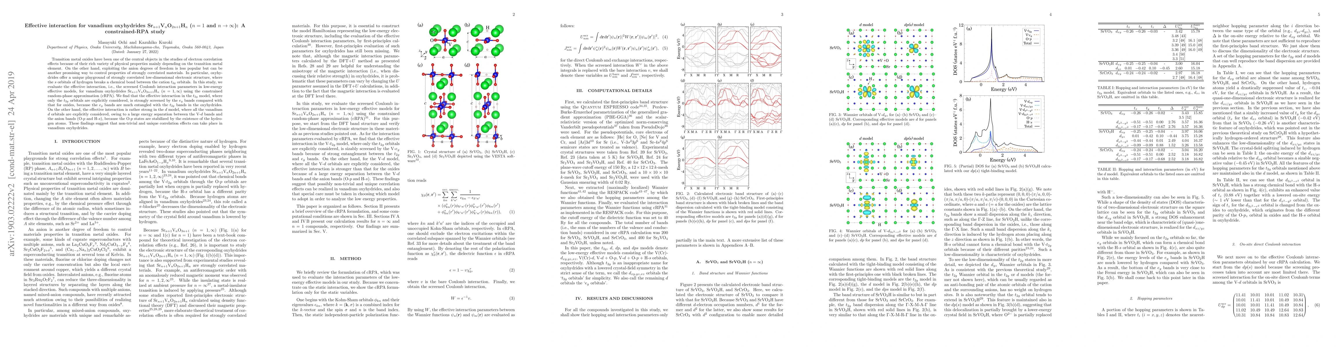 Researchers used constrained random-phase approximation to study vanadium oxyhydrides, finding strong screening of Coulomb interactions due to entangled bands, and unique correlation effects compared to oxide materials.