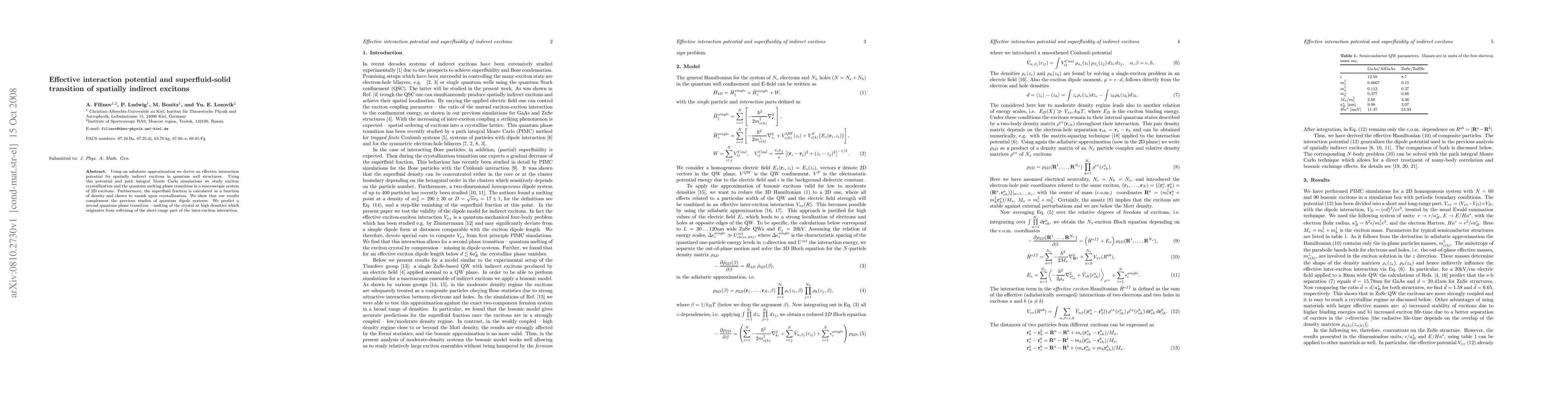 Researchers used an adiabatic approximation to study spatially indirect excitons, finding that a commonly used model fails to describe them accurately. They also discovered that these excitons can exhibit a superfluid phase transition, where their fluid-like behavior disappears upon crystallization.