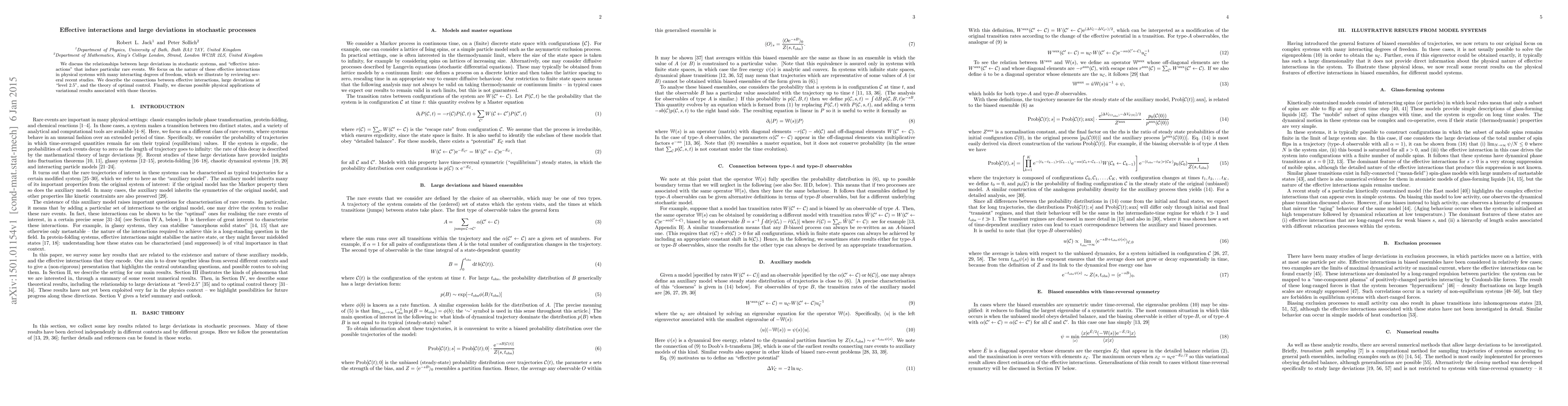 We discuss the relationships between large deviations in stochastic systems, and "effective interactions" that induce particular rare events. We focus on the nature of these effective interactions in physical systems with many interacting degrees of freedom, which we illustrate by reviewing several recent studies. We describe the connections between effective interactions, large deviations at "level 2.5", and the theory of optimal control. Finally, we discuss possible physical applications of variational results associated with those theories.