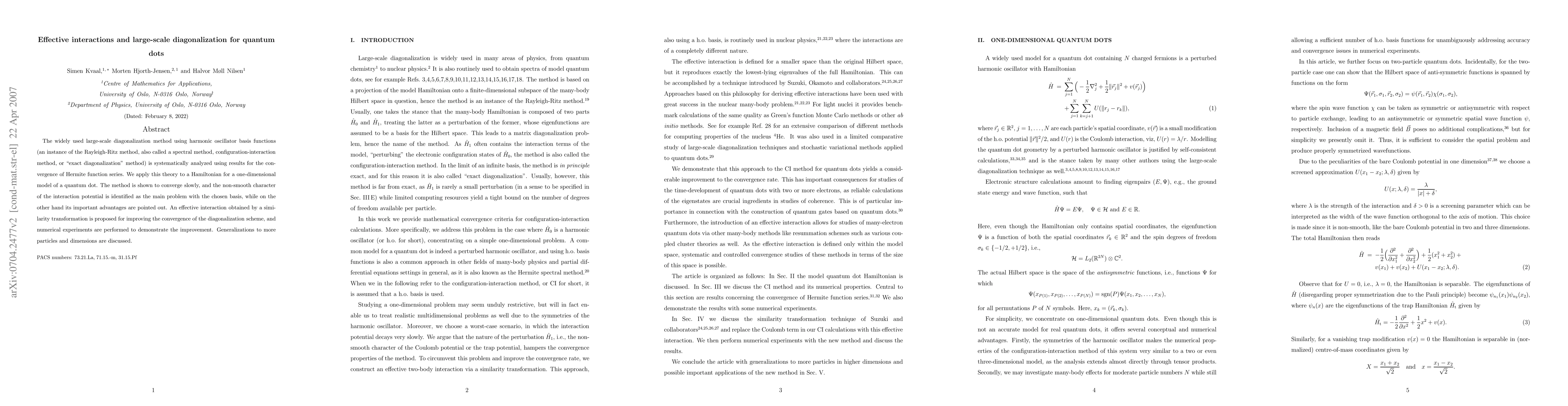 This paper analyzes the convergence of large-scale diagonalization methods for quantum dots using harmonic oscillator basis functions, identifying slow convergence due to non-smooth interaction potentials. An effective interaction method is proposed to improve convergence, with numerical experiments demonstrating its efficacy.