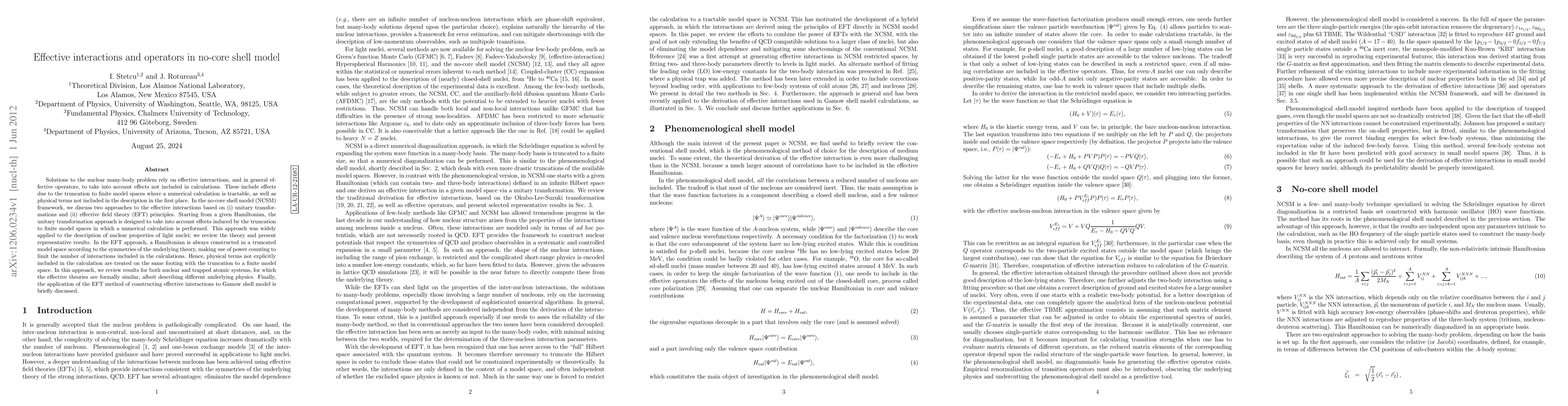 This paper explores two approaches to effective interactions in the no-core shell model (NCSM): unitary transformations and effective field theory (EFT). It reviews the theory and results of both methods, highlighting their applications to nuclear properties and the treatment of physical terms not included in calculations.