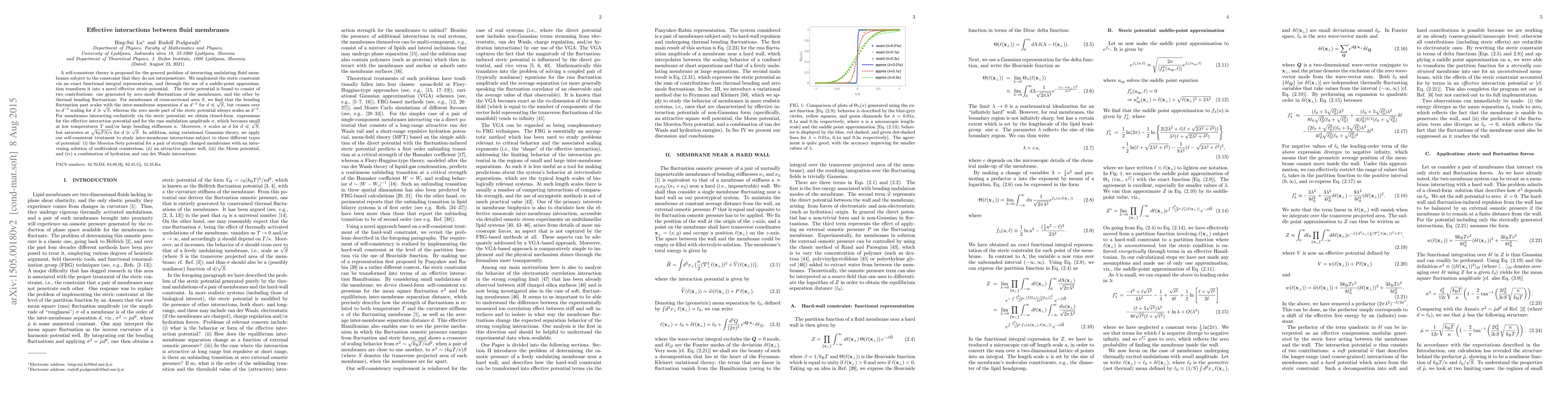 This paper proposes a self-consistent theory for interacting fluid membranes, deriving an effective steric potential that accounts for zero mode and thermal bending fluctuations. The steric potential scales differently with separation depending on the membrane area and separation, and provides closed-form expressions for interaction potentials and undulation amplitudes under various conditions.
