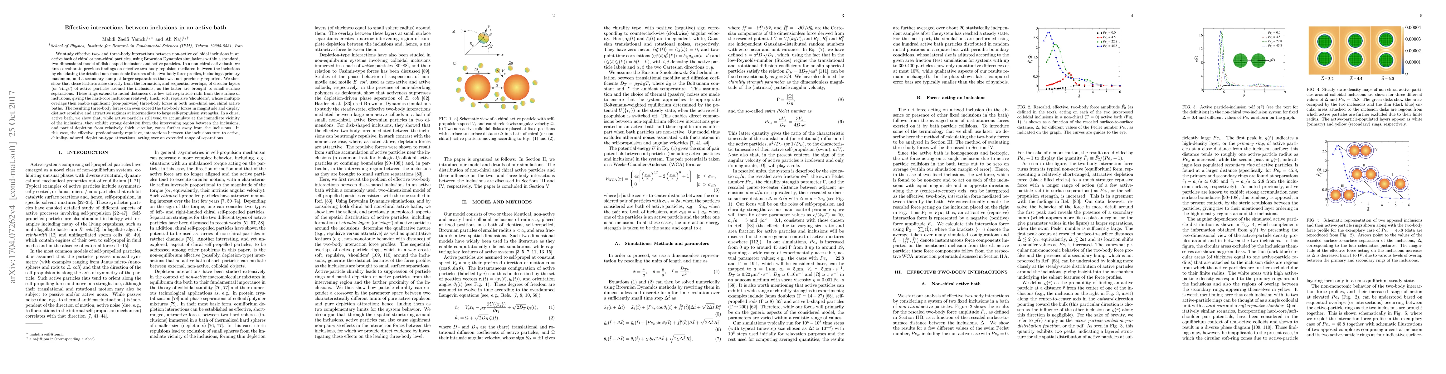 The paper presents a detailed analysis of two- and three-body interactions mediated by active particles between colloidal inclusions, revealing novel non-monotonic force profiles and complex three-body forces.