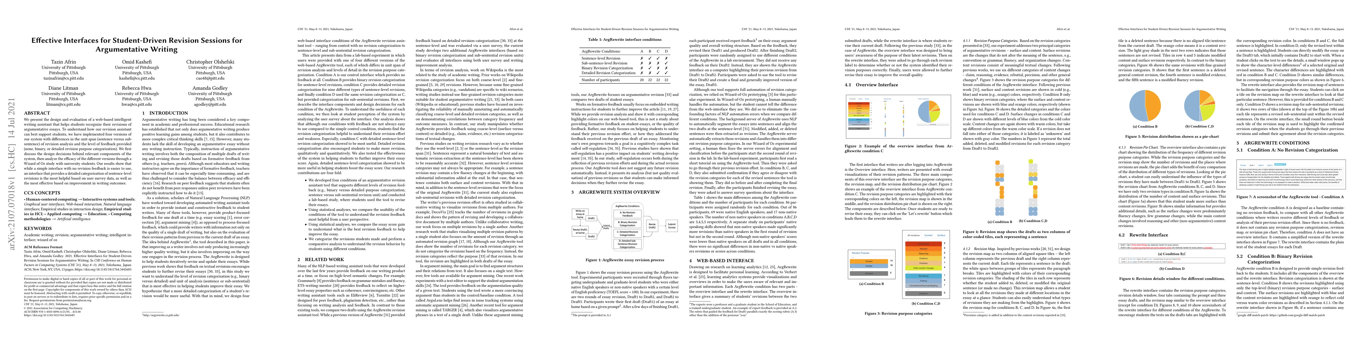 This paper evaluates a web-based intelligent writing assistant designed to aid students in revising argumentative essays, comparing four system versions based on revision analysis unit span and feedback level. Results from a Wizard of Oz study indicate that detailed sentence-level revision categorization is most effective in improving writing outcomes, despite simpler interfaces being easier to use.