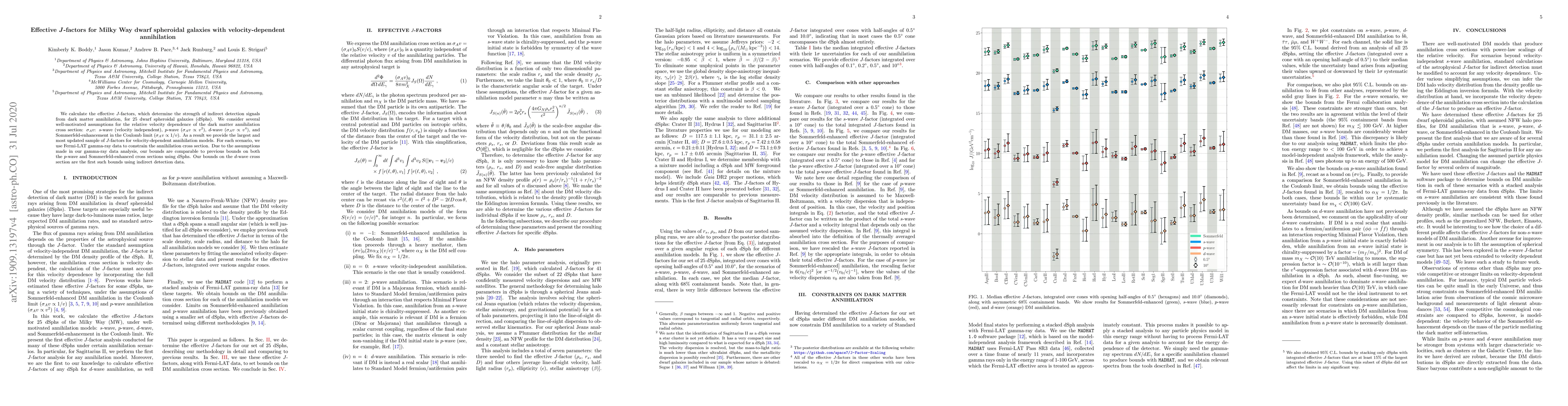 This paper calculates the effective $J$-factors for 25 Milky Way dwarf spheroidal galaxies under various velocity-dependent dark matter annihilation scenarios, providing the largest and most updated sample for these models. The results include the first indirect detection bounds on the $d$-wave cross section and are comparable to previous bounds on $p$-wave and Sommerfeld-enhanced cross sections.