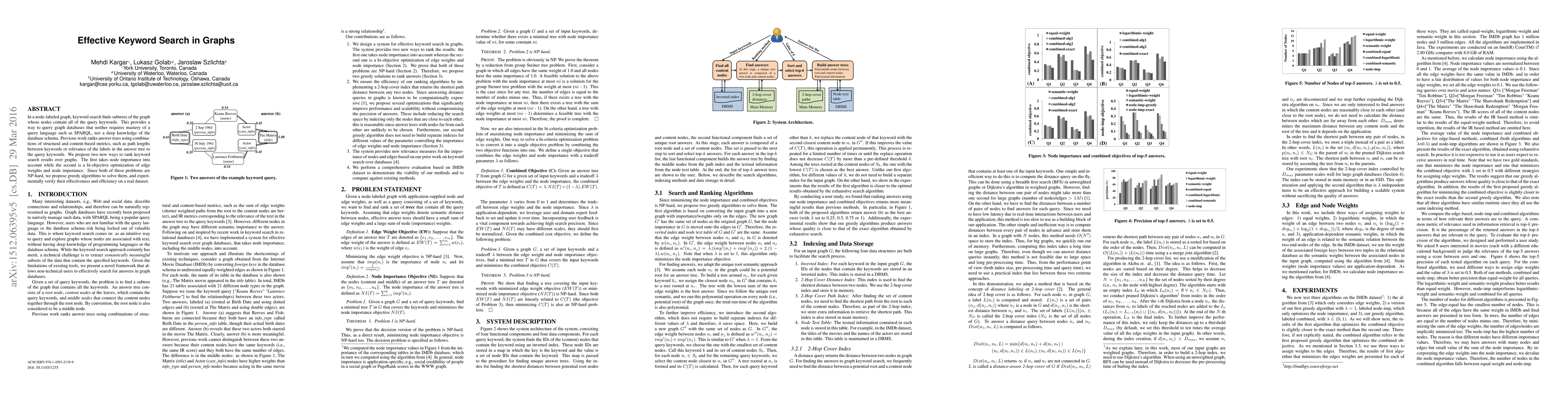 This paper proposes new ranking methods for keyword search in node-labeled graphs, considering node importance and optimizing both edge weights and node importance. It introduces greedy algorithms to solve the NP-hard problems and validates their effectiveness through experiments on a real dataset.