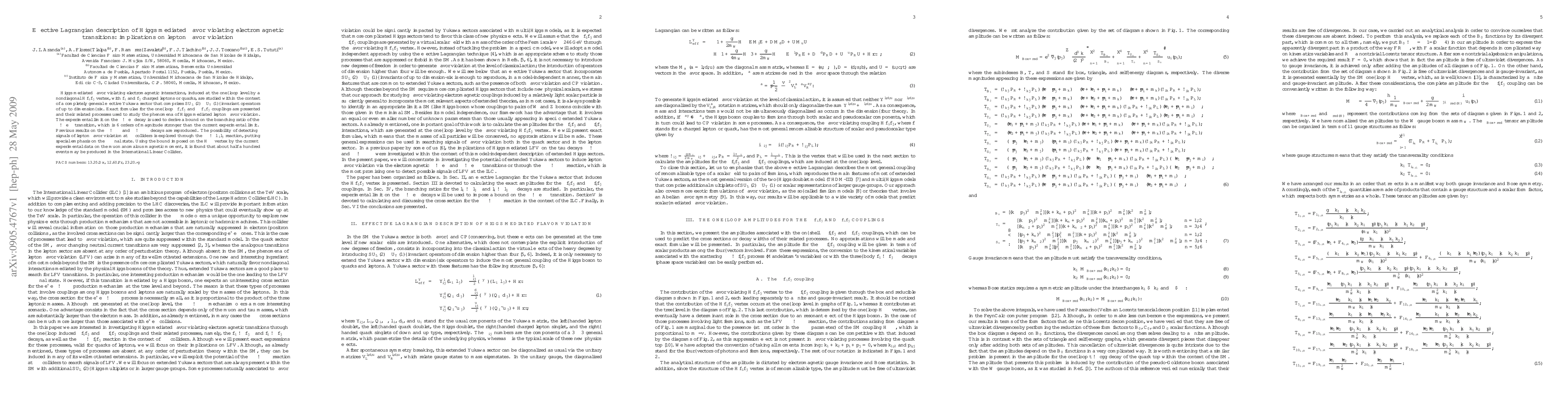 Higgs mediated flavor violating electromagnetic interactions, induced at the one--loop level by a nondiagonal $Hf_if_j$ vertex, with $f_i$ and $f_j$ charged leptons or quarks, are studied within the context of a completely general effective Yukawa sector that comprises $SU_L(2)\times U_Y(1)$--invariant operators of up to dimension--six. Exact formulae for the one--loop $\gamma f_if_j$ and $\gamma \gamma f_if_j$ couplings are presented and their related processes used to study the phenomena of Higgs mediated lepton flavor violation. The experimental limit on the $\mu \to e\gamma$ decay is used to derive a bound on the branching ratio of the $\mu \to e\gamma \gamma$ transition, which is 6 orders of magnitude stronger than the current experimental limit. Previous results on the $\tau \to \mu \gamma$ and $\tau \to \mu \gamma \gamma$ decays are reproduced. The possibility of detecting signals of lepton flavor violation at $\gamma \gamma$ colliders is explored through the $\gamma \gamma \to l_il_j$ reaction, putting special emphasis on the $\tau \mu$ final state. Using the bound imposed on the $H\tau \mu$ vertex by the current experimental data on the muon anomalous magnetic moment, it is found that about half a hundred events may be produced in the International Linear Collider.