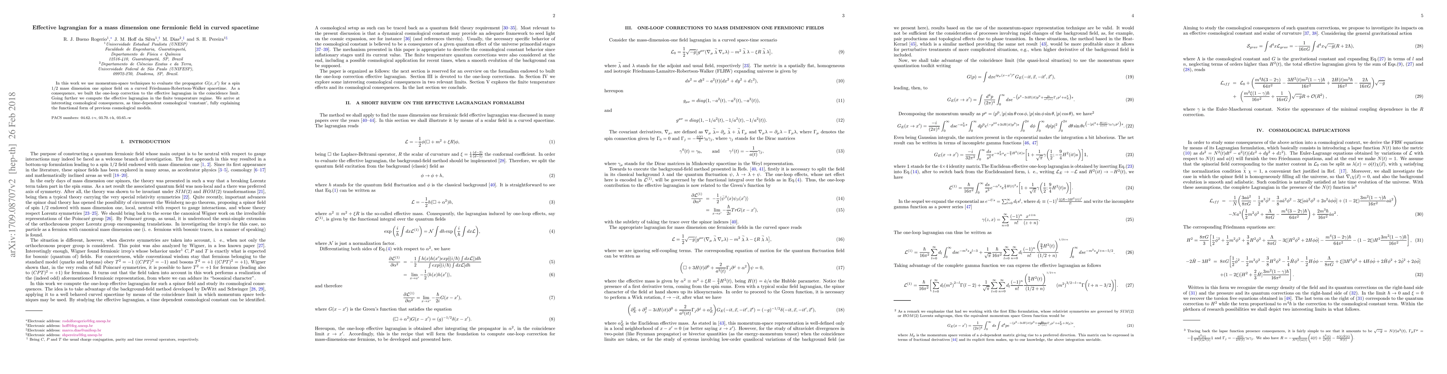 This paper evaluates the propagator for a mass dimension one fermionic field in curved spacetime using momentum-space techniques, deriving the one-loop correction to the effective Lagrangian, and explores its implications in both coincidence and finite temperature regimes, leading to a time-dependent cosmological constant.
