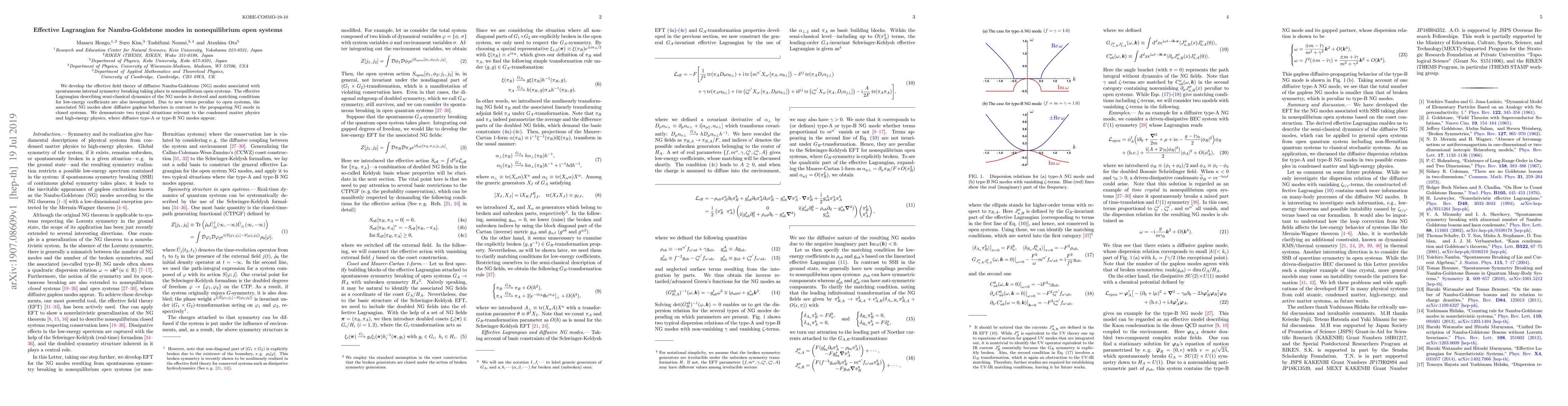The paper presents a comprehensive EFT for NG modes in nonequilibrium open systems, including a general GA-invariant Schwinger-Keldysh effective Lagrangian and detailed matching conditions for low-energy coefficients.