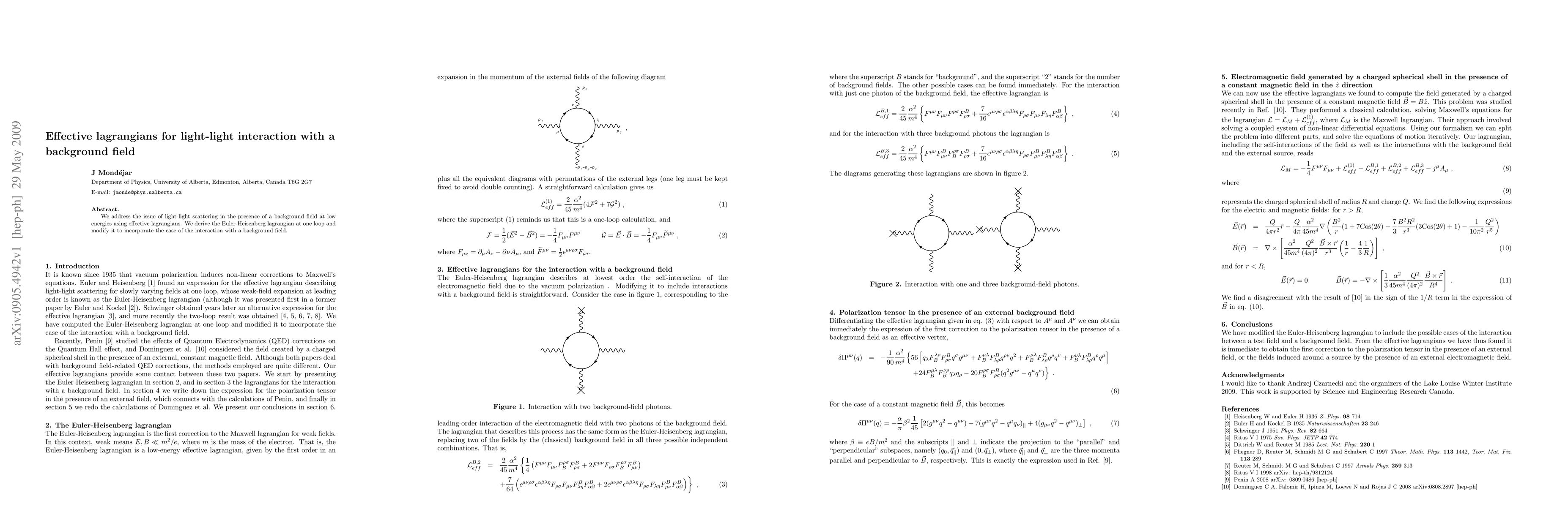Researchers developed an effective lagrangian to describe light-light scattering in the presence of a background field at low energies, providing a more accurate understanding of this phenomenon.