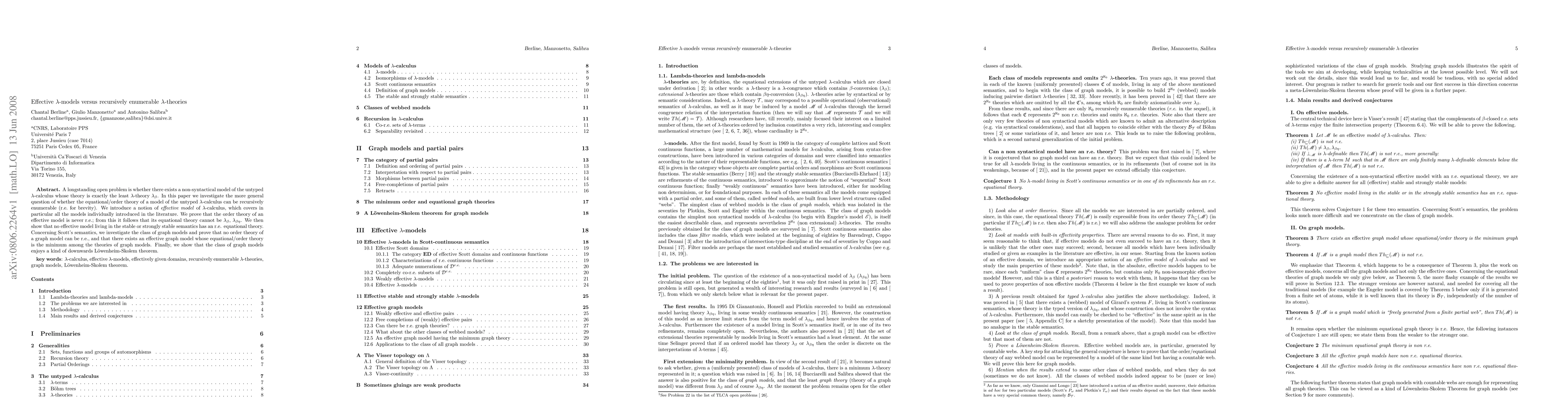 A longstanding open problem is whether there exists a non syntactical model of the untyped lambda-calculus whose theory is exactly the least lambda-theory (l-beta). In this paper we investigate the more general question of whether the equational/order theory of a model of the (untyped) lambda-calculus can be recursively enumerable (r.e. for brevity). We introduce a notion of effective model of lambda-calculus calculus, which covers in particular all the models individually introduced in the literature. We prove that the order theory of an effective model is never r.e.; from this it follows that its equational theory cannot be l-beta or l-beta-eta. We then show that no effective model living in the stable or strongly stable semantics has an r.e. equational theory. Concerning Scott's semantics, we investigate the class of graph models and prove that no order theory of a graph model can be r.e., and that there exists an effective graph model whose equational/order theory is minimum among all theories of graph models. Finally, we show that the class of graph models enjoys a kind of downwards Lowenheim-Skolem theorem.