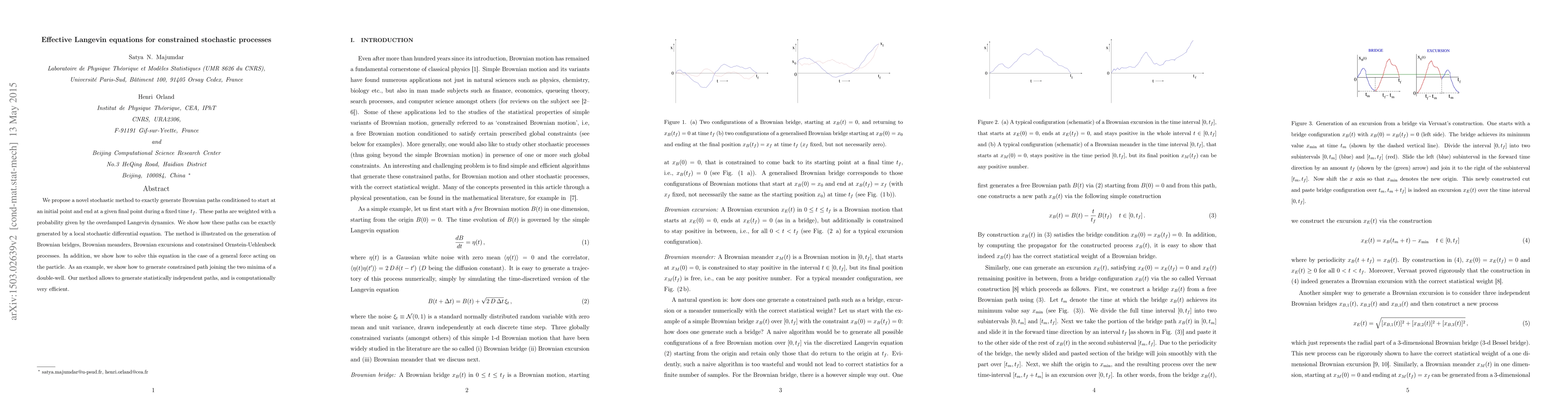 Researchers propose a method to generate constrained Brownian paths with a given starting point and final point within a fixed time frame, using a local stochastic differential equation and allowing for general forces.