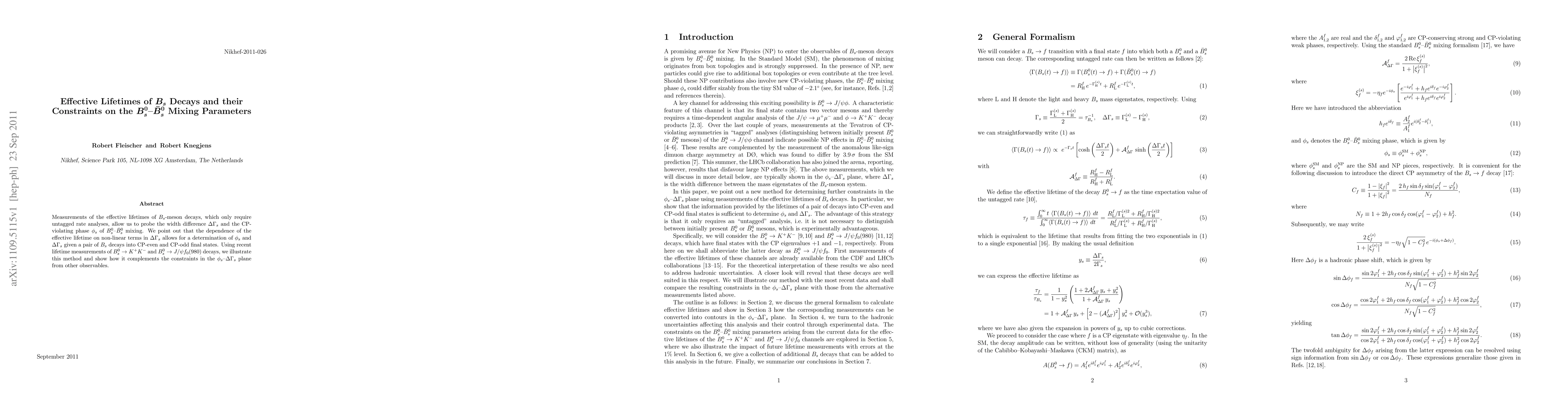 This paper discusses a method to determine the CP-violating phase u03c4_s and width difference u03c4u2081_s of B^0_s-\bar B^0_s mixing using effective lifetimes of B_s decays into CP-even and CP-odd final states. The authors illustrate this with recent measurements of B^0_s -> K+K- and B^0_s -> J/psi f_0(980) decays, showing how it complements other constraints in the u03c4_s-u03c4u2081_s plane.
